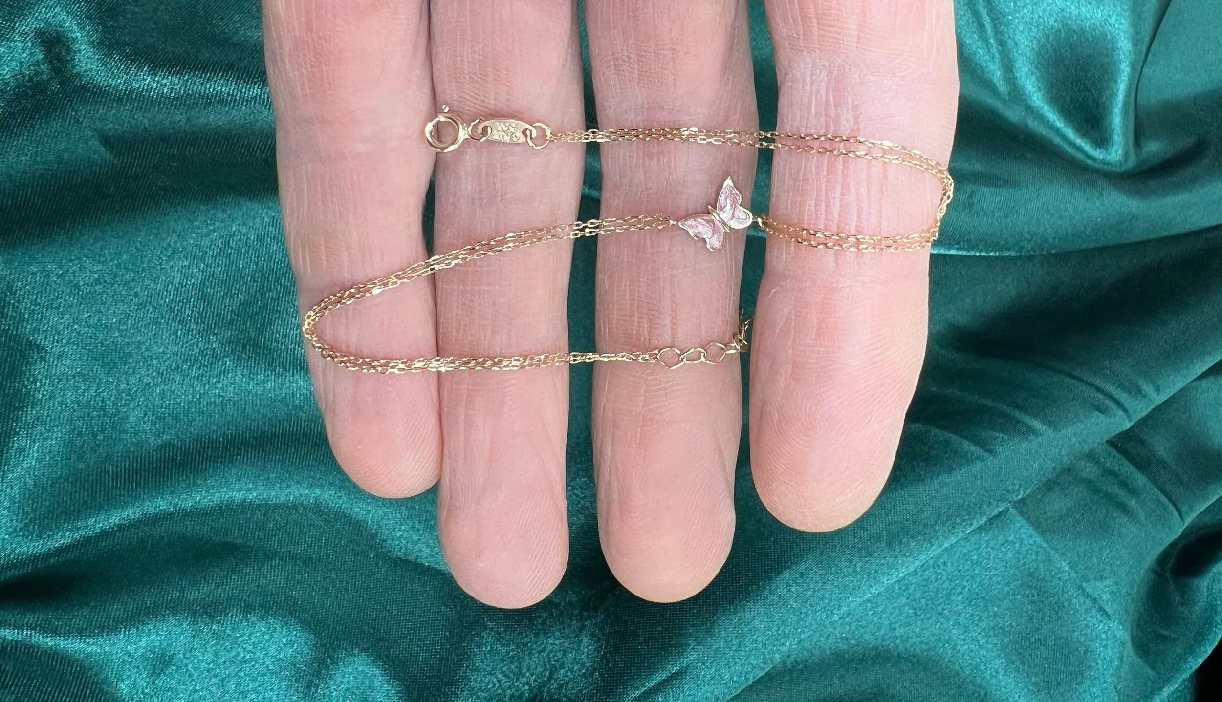 Image 1 of 4 Image 2 of 4 Image 3 of 4 Image 4 of 4 14k 1.3g Rose Gold 9” $160.00 Butterfly Charm Bracelet beautifully with unmistakable details. 1.5mm. Add To Cart Added! Butterfly Charm Bracelet beautifully with unmistakable details. 1.5mm. Reviews Reviewer Name Review Date Star Rating Description Posted on Etsy Product Show More