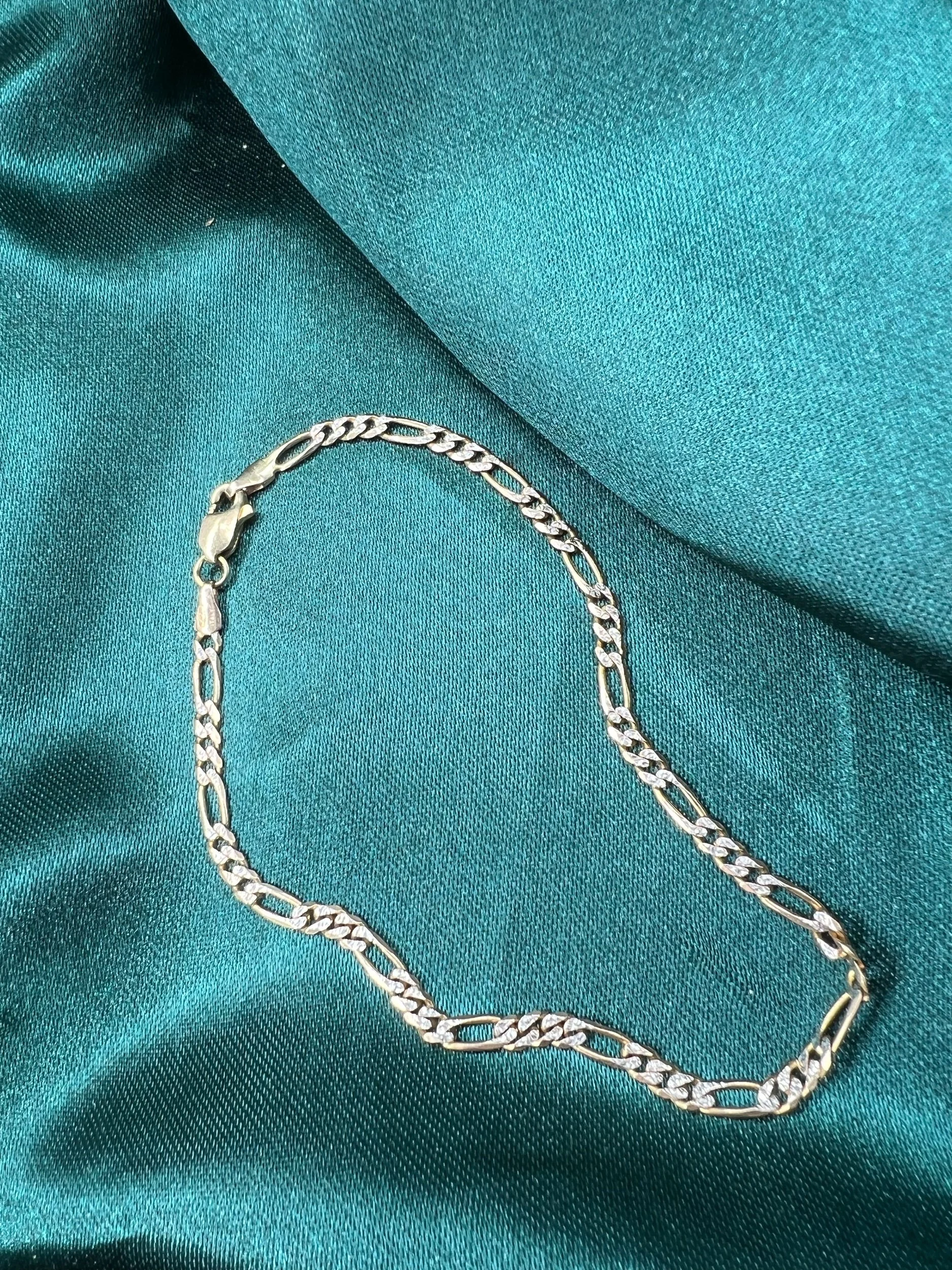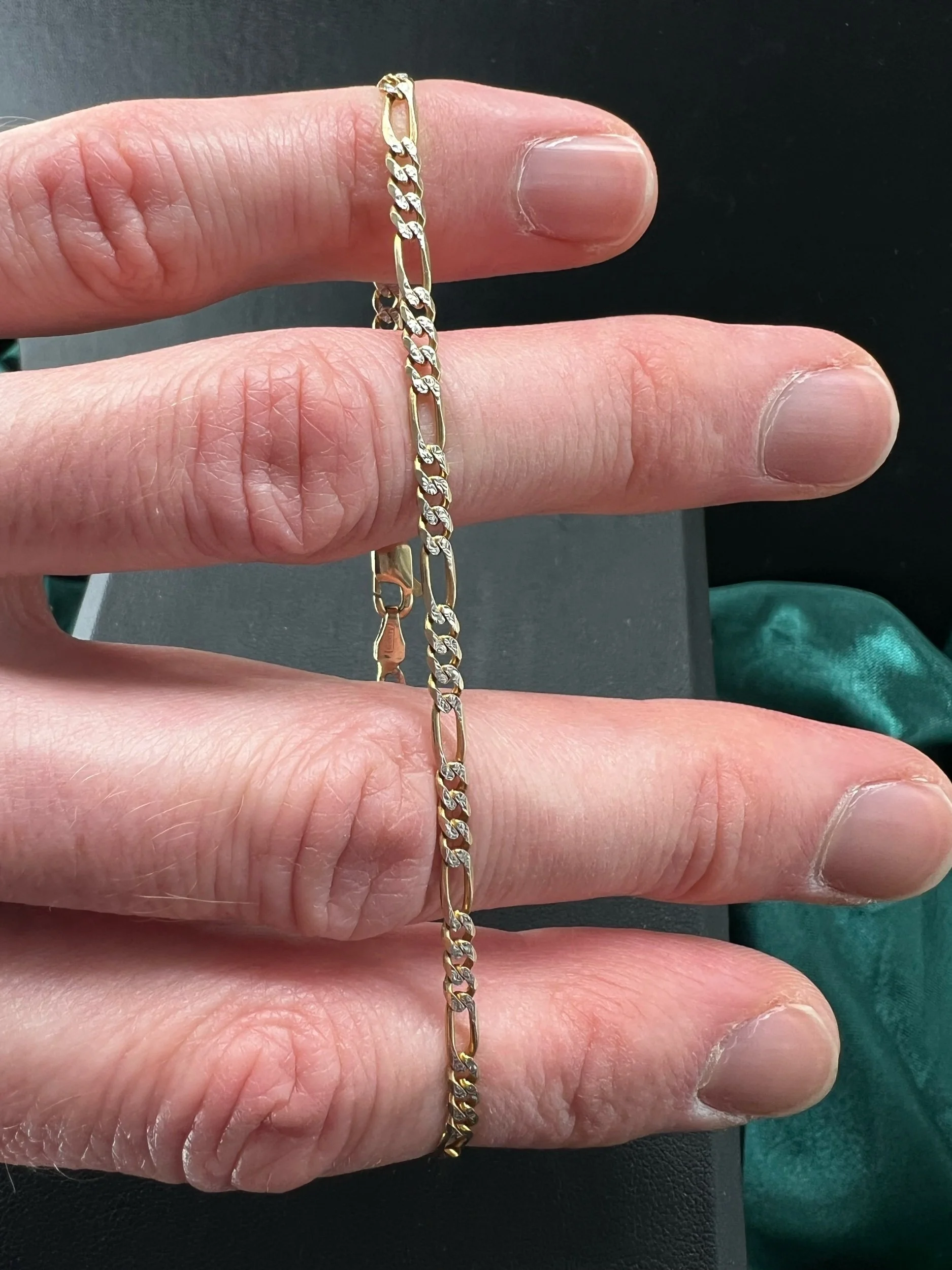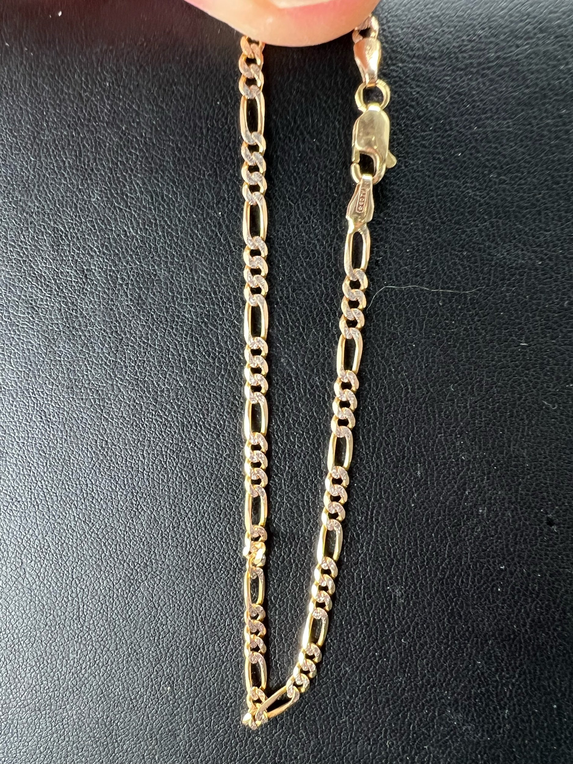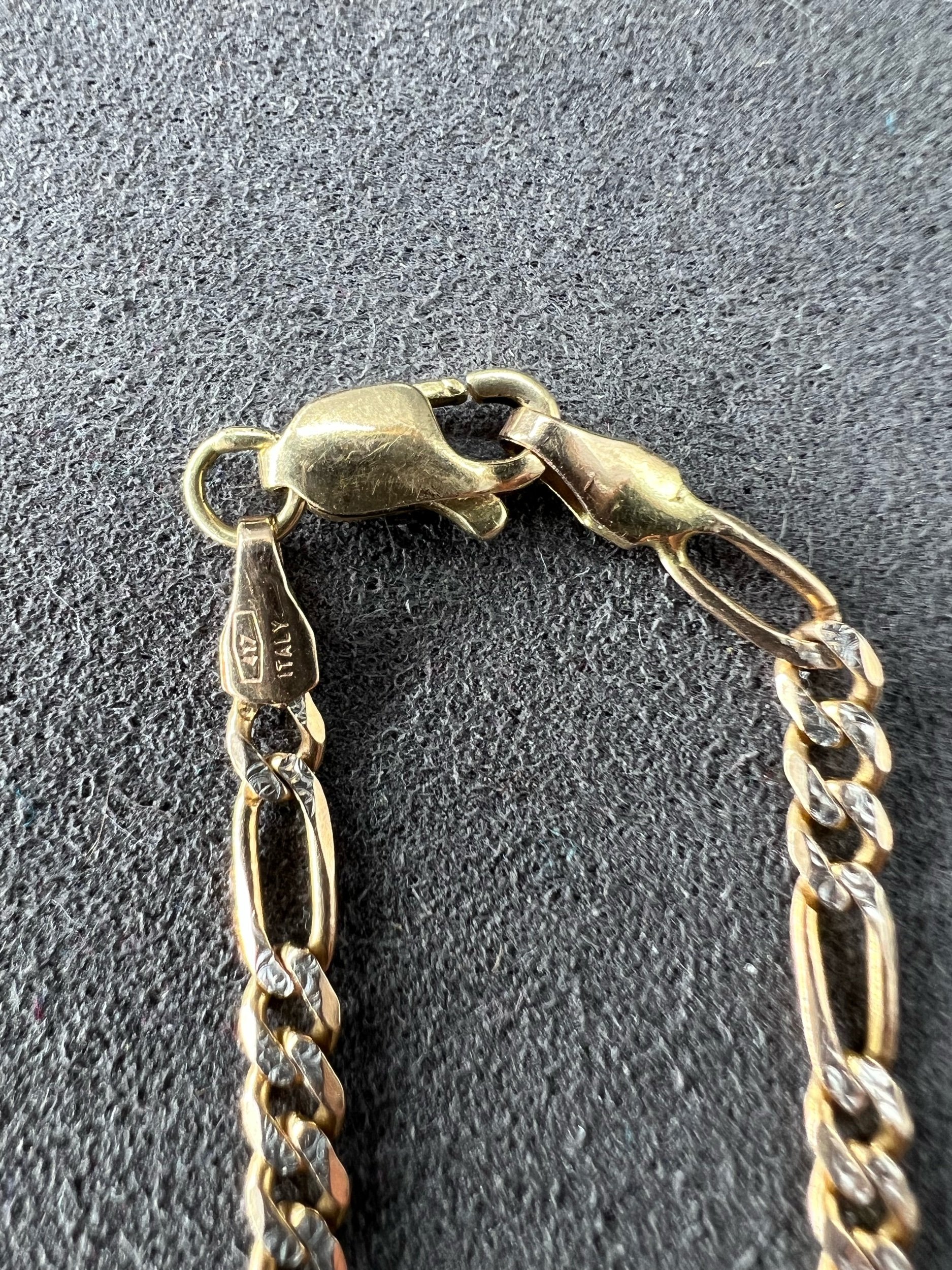 Image 1 of 4 Image 2 of 4 Image 3 of 4 Image 4 of 4 10k 3g Two Tone Figaro 8” $220.00 Elegant two tone gold Figaro link bracelet delivering classic Italian-inspired style. 3mm Add To Cart Added! Elegant two tone gold Figaro link bracelet delivering classic Italian-inspired style. 3mm Reviews Reviewer Name Review Date Star Rating Description Posted on Etsy Product Show More