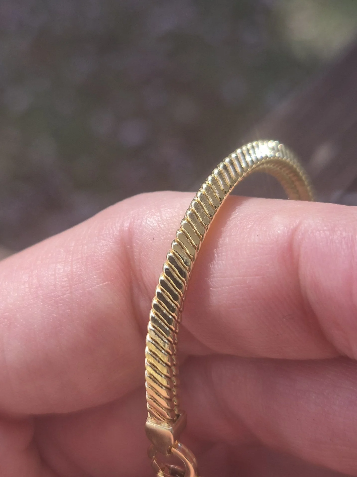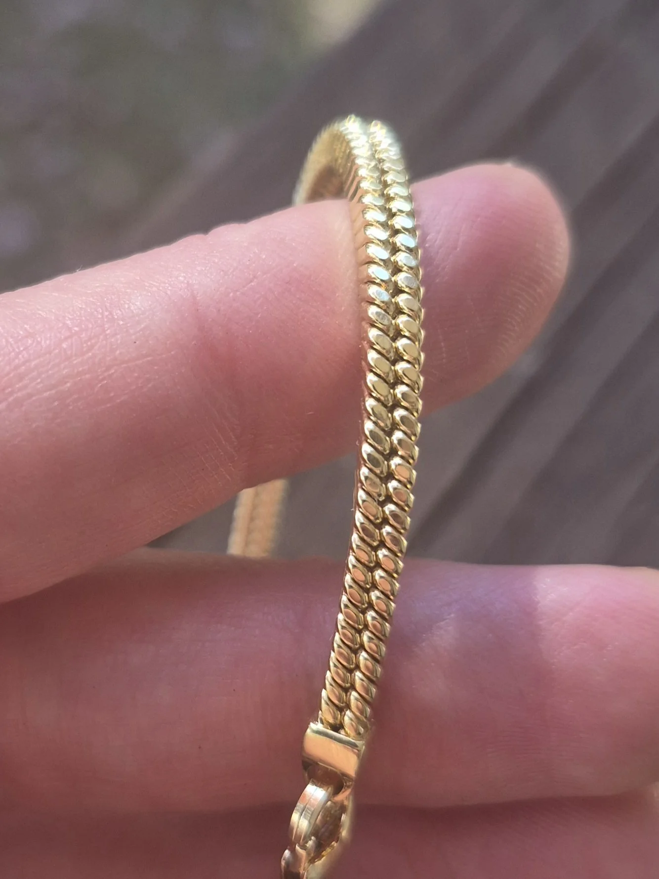 Image 1 of 4 Image 2 of 4 Image 3 of 4 Image 4 of 4 18k 9.1g squared link bracelet- 7.5" $1,100.00 3mm wide and 7.5 inches long Add To Cart Added! 3mm wide and 7.5 inches long Reviews Reviewer Name Review Date Star Rating Description Posted on Etsy Product Show More