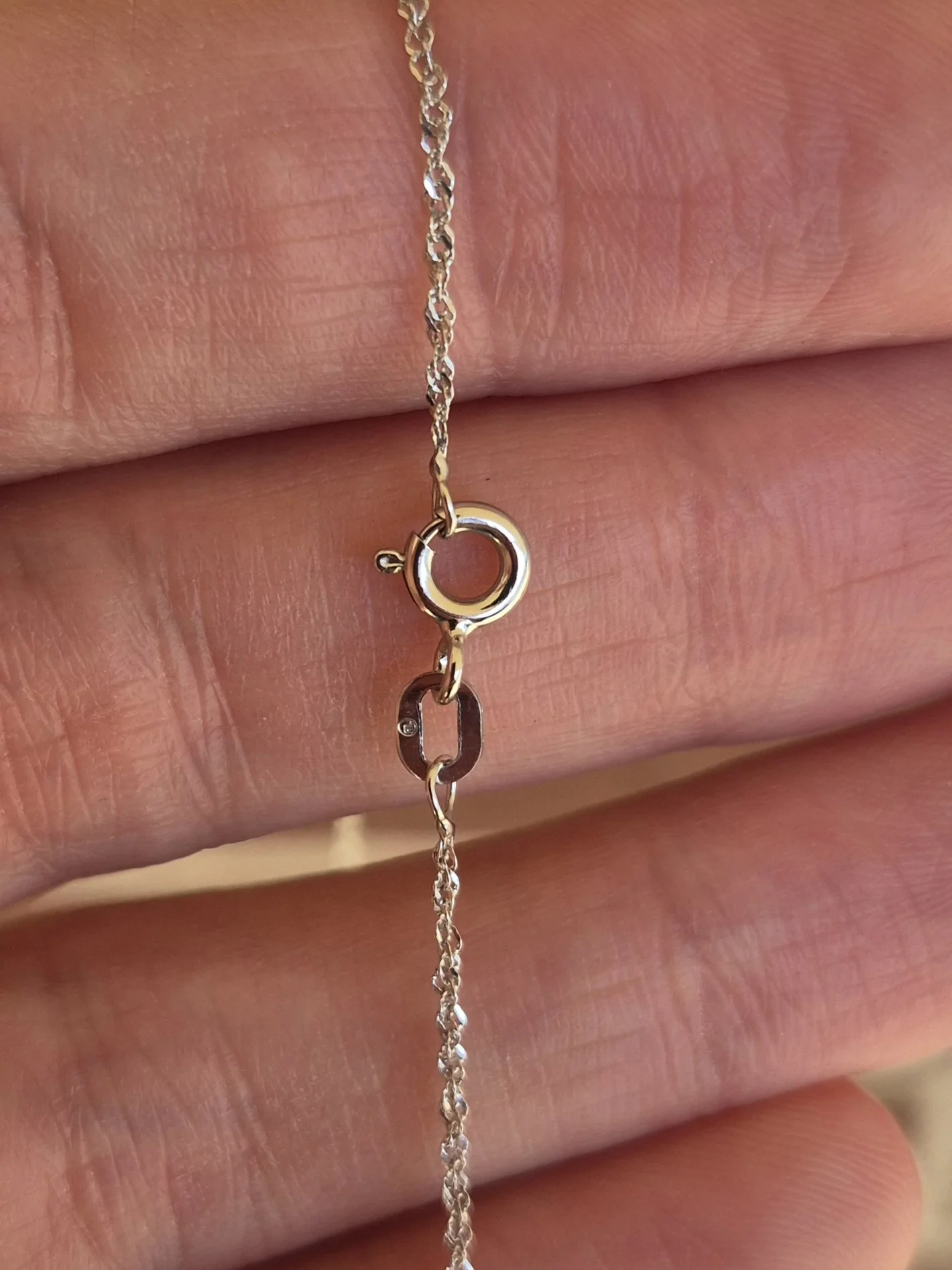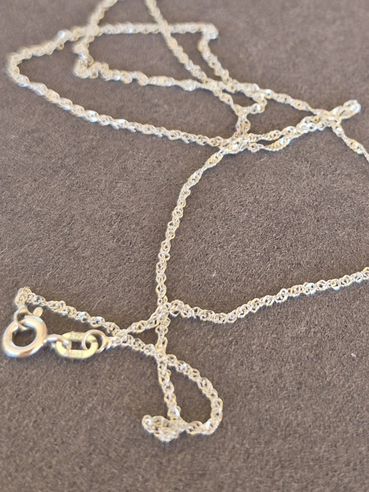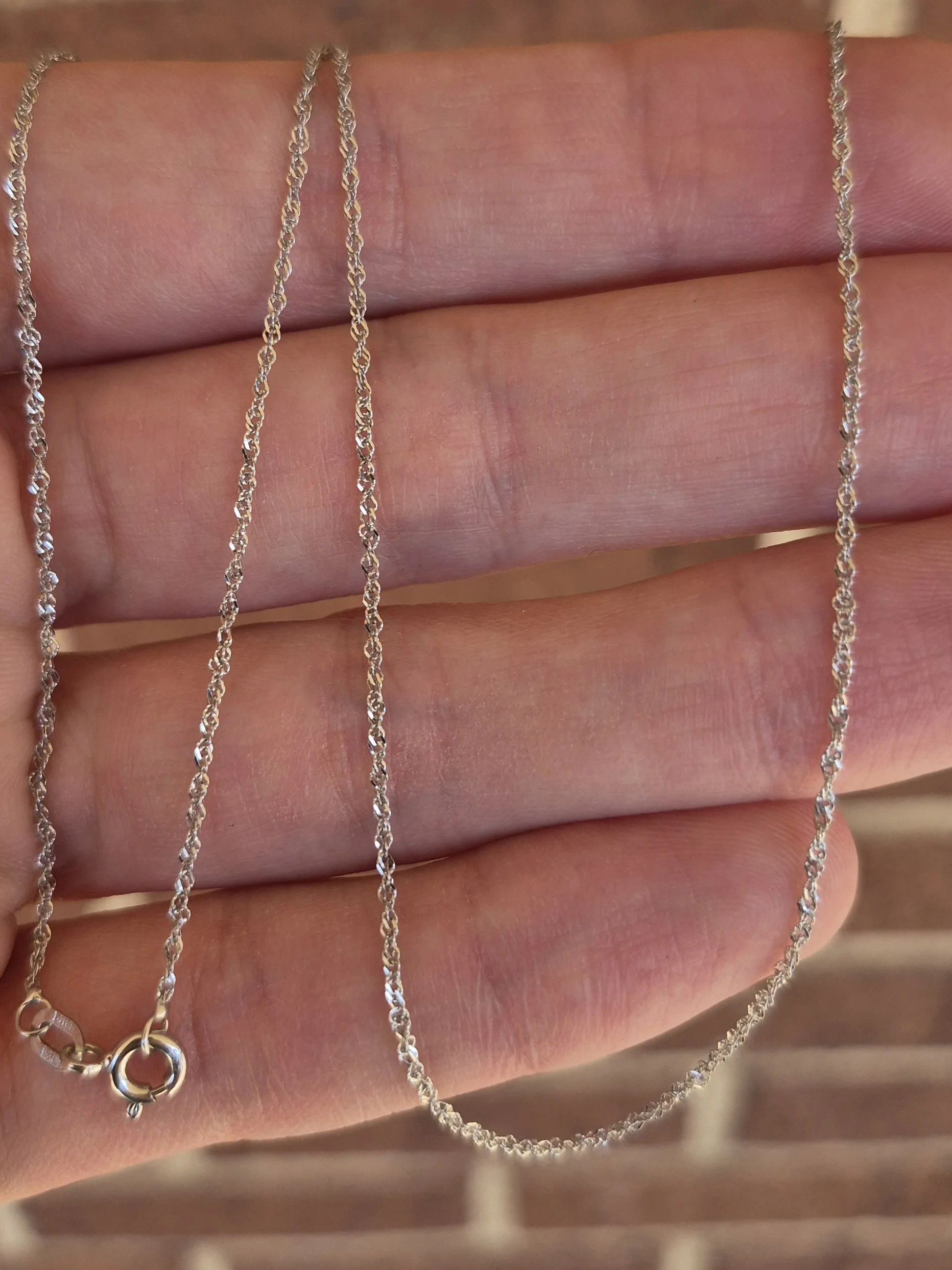 Image 1 of 3 Image 2 of 3 Image 3 of 3 14k 1.3g white gold singapore chain- 19" $125.00 0.7mm wide and 19 inches long, perfect for a charm Add To Cart Added! 0.7mm wide and 19 inches long, perfect for a charm Reviews Reviewer Name Review Date Star Rating Description Posted on Etsy Product Show More