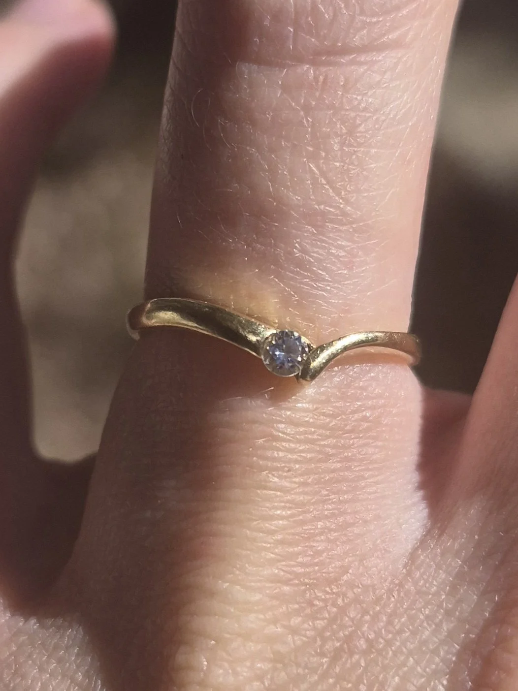 Image 1 of 6 Image 2 of 6 Image 3 of 6 Image 4 of 6 Image 5 of 6 Image 6 of 6 18k 1.8g chevron ring with diamond- sz6.25 $230.00 Add To Cart Added! Reviews Reviewer Name Review Date Star Rating Description Posted on Etsy Product Show More