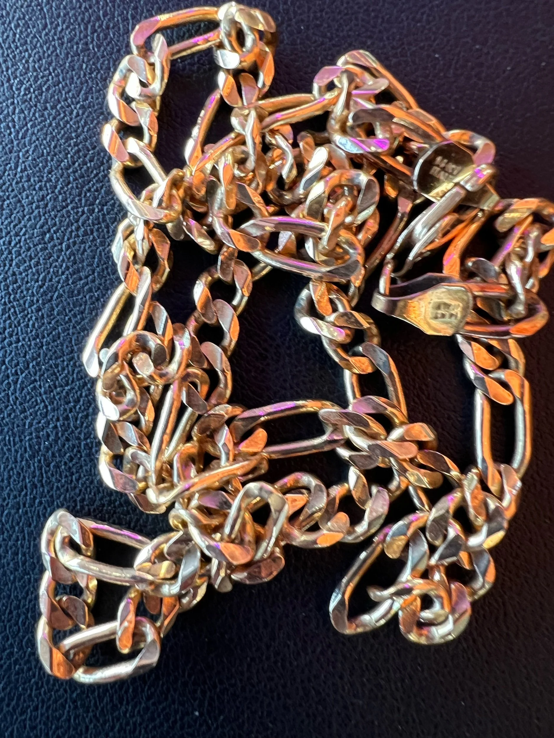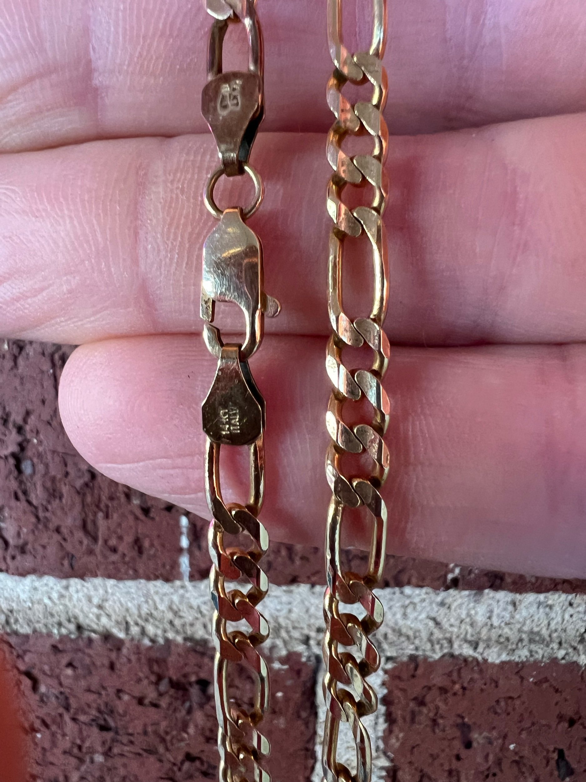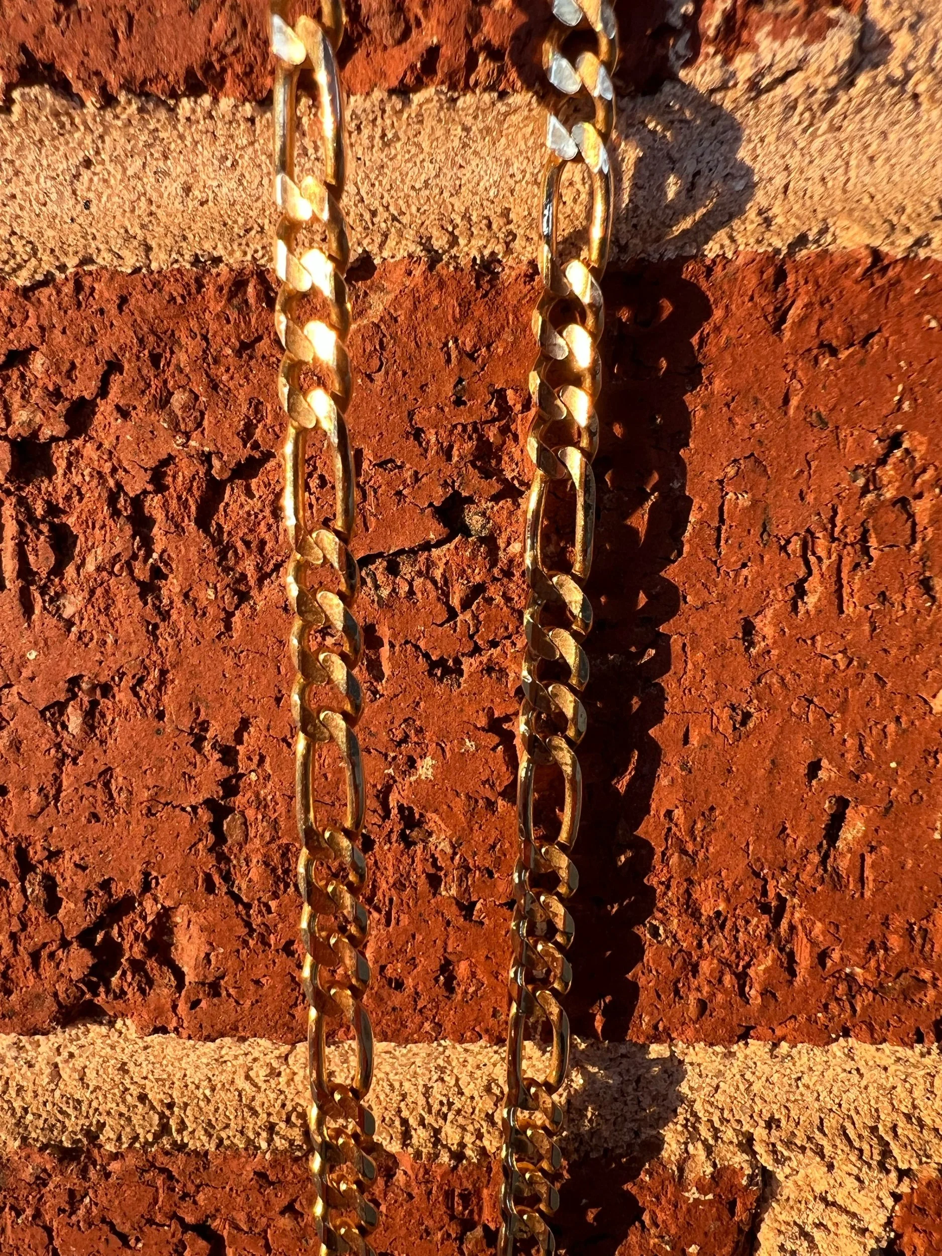 Image 1 of 4 Image 2 of 4 Image 3 of 4 Image 4 of 4 10k 18.7g Figaro Chain 20” $1,330.00 Elegant Figaro gold chain, effortlessly timeless. 4.5mm Add To Cart Added! Elegant Figaro gold chain, effortlessly timeless. 4.5mm Reviews Reviewer Name Review Date Star Rating Description Posted on Etsy Product Show More