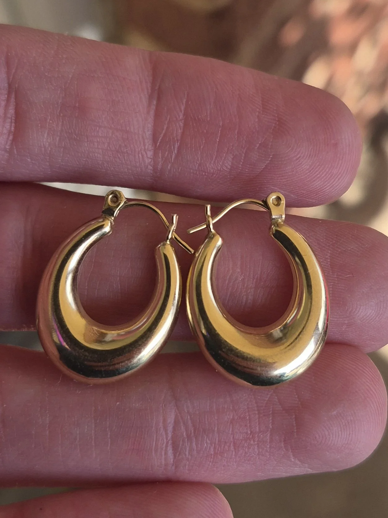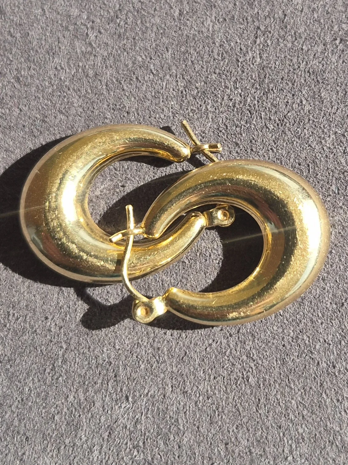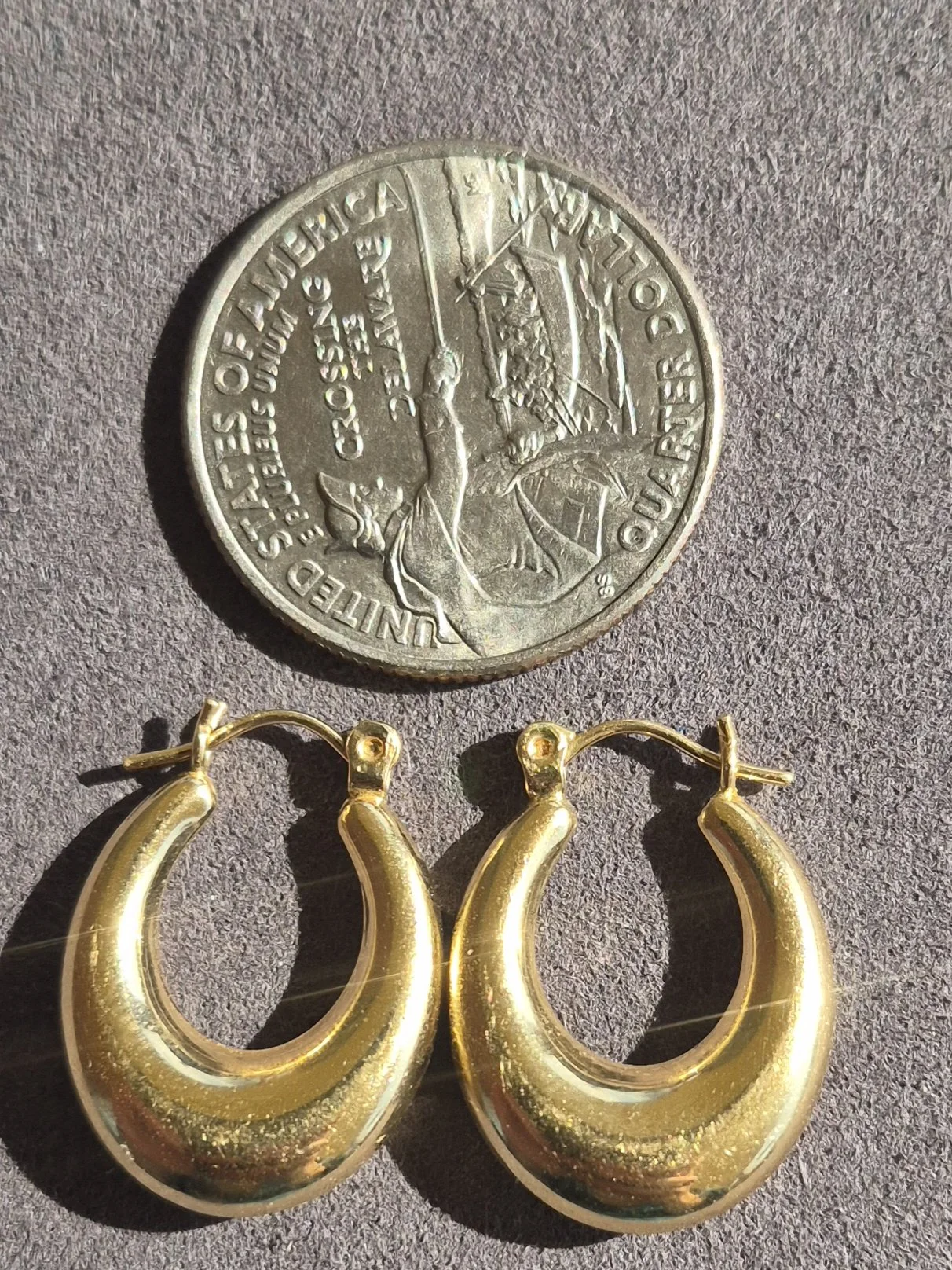 Image 1 of 3 Image 2 of 3 Image 3 of 3 14k 2.1g hollow oval hoops $197.00 Hollow yellow gold hoops with no dents Add To Cart Added! Hollow yellow gold hoops with no dents Reviews Reviewer Name Review Date Star Rating Description Posted on Etsy Product Show More