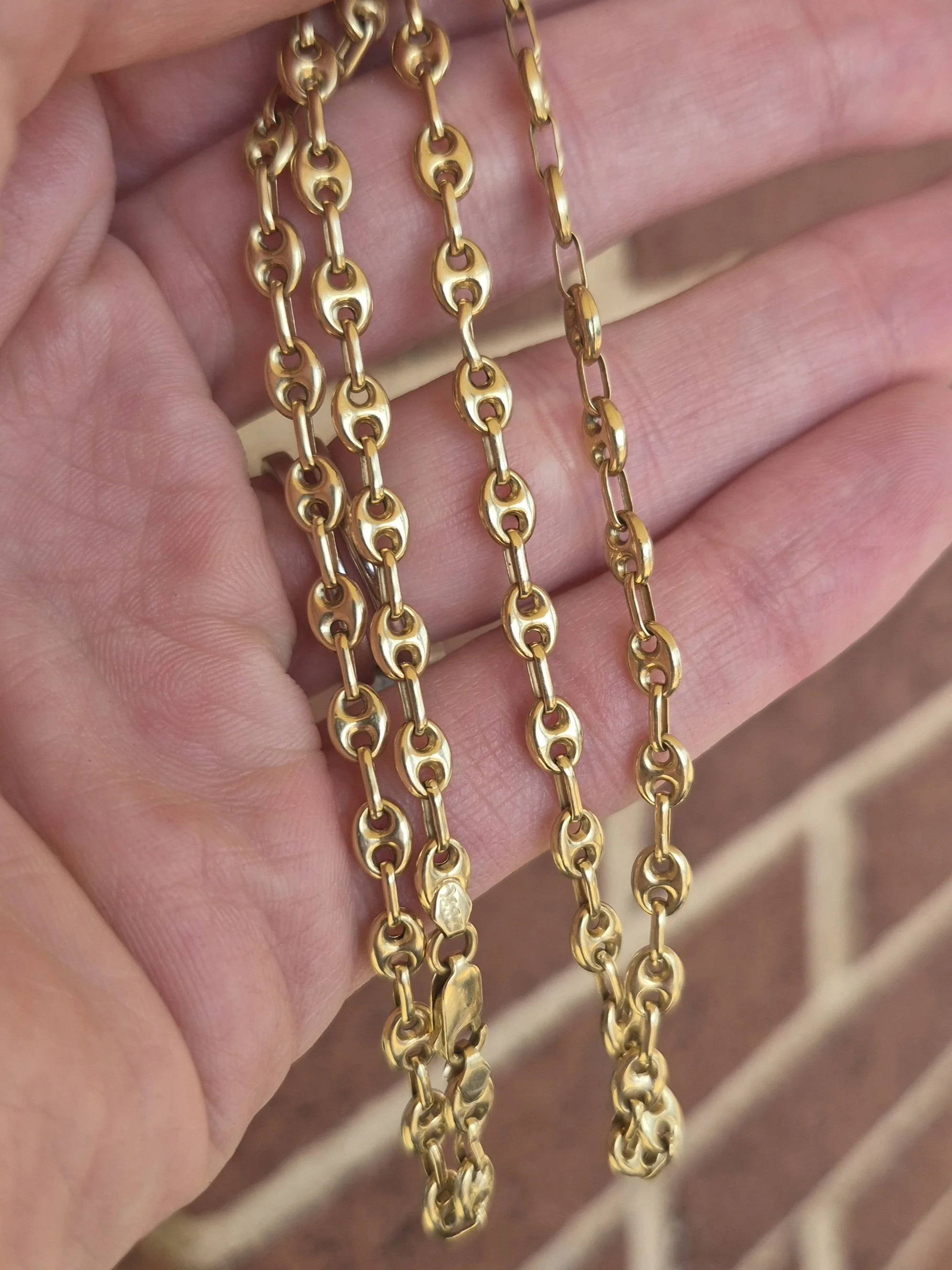 Image 1 of 4 Image 2 of 4 Image 3 of 4 Image 4 of 4 18k 9.9g gucci puff chain- 20" $1,199.00 4.3mm wide and 20 inches long. Semi-hollow Add To Cart Added! 4.3mm wide and 20 inches long. Semi-hollow Reviews Reviewer Name Review Date Star Rating Description Posted on Etsy Product Show More