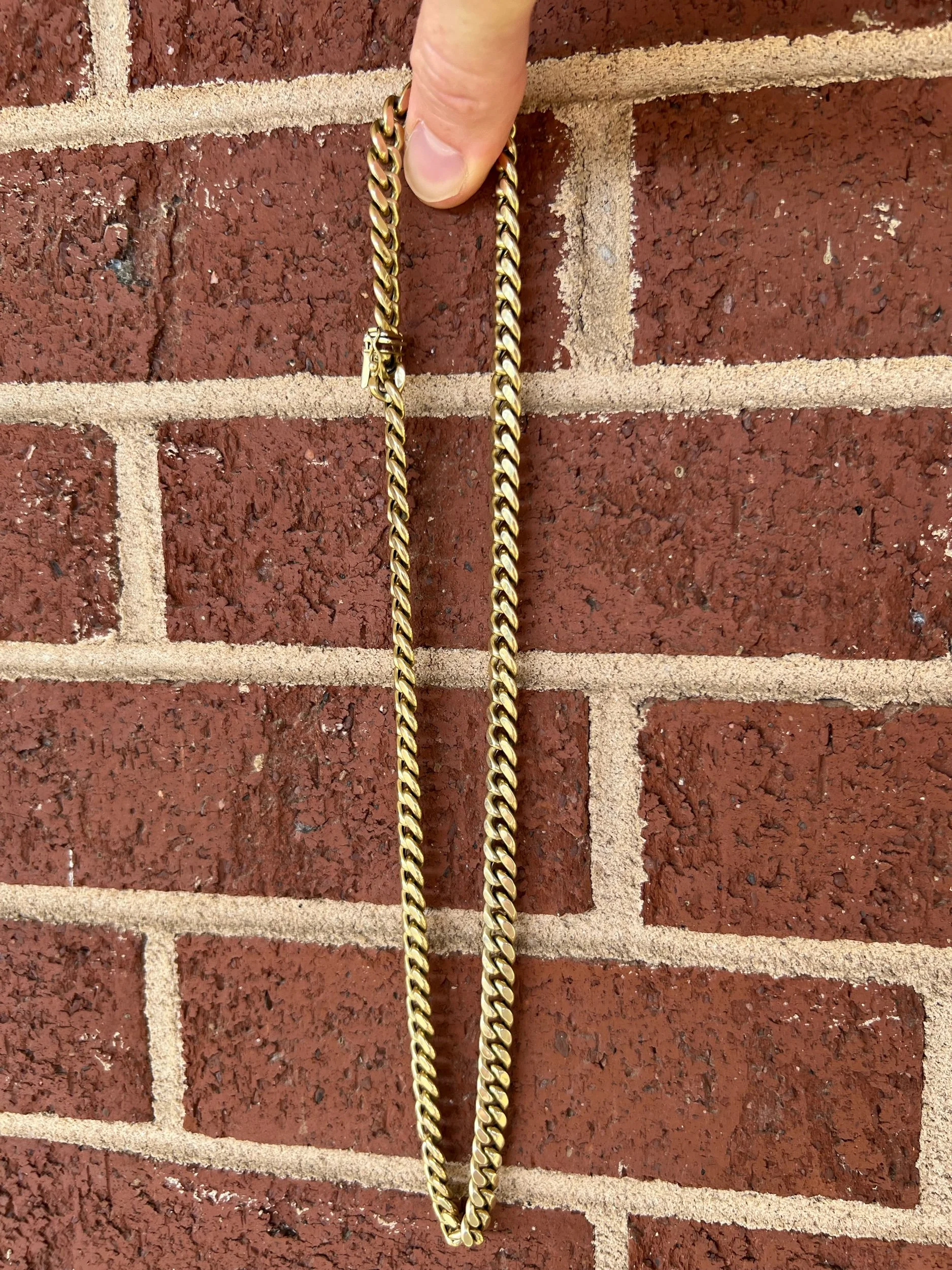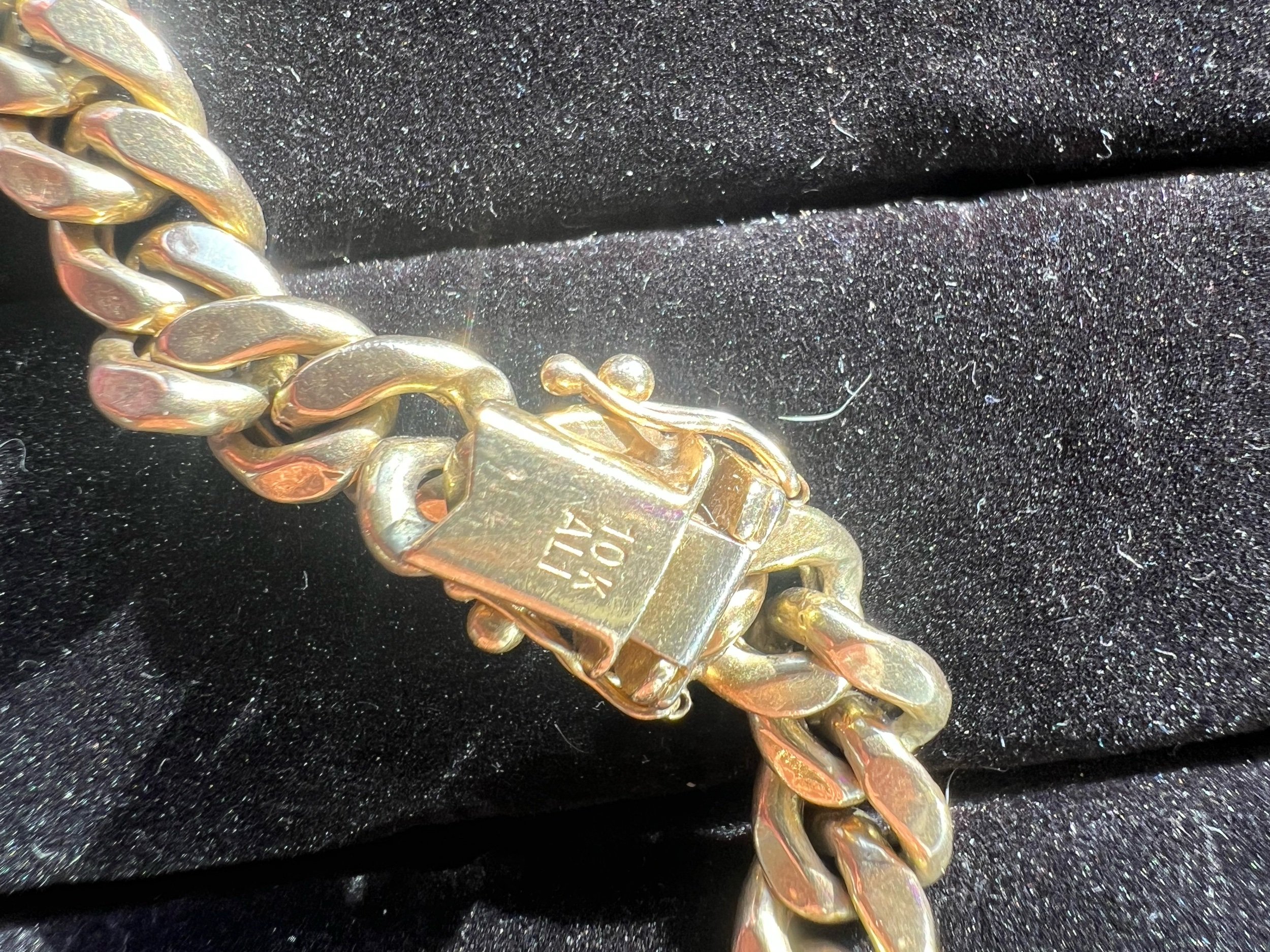Image 1 of 5 Image 2 of 5 Image 3 of 5 Image 4 of 5 Image 5 of 5 10k 45.4g Miami Cuban 23” Chain 8.65mm $3,088.00 Semi-solid Miami Cuban link with a box lock. Nice and sturdy chain. Add To Cart Added! Semi-solid Miami Cuban link with a box lock. Nice and sturdy chain. Reviews Reviewer Name Review Date Star Rating Description Posted on Etsy Product Show More