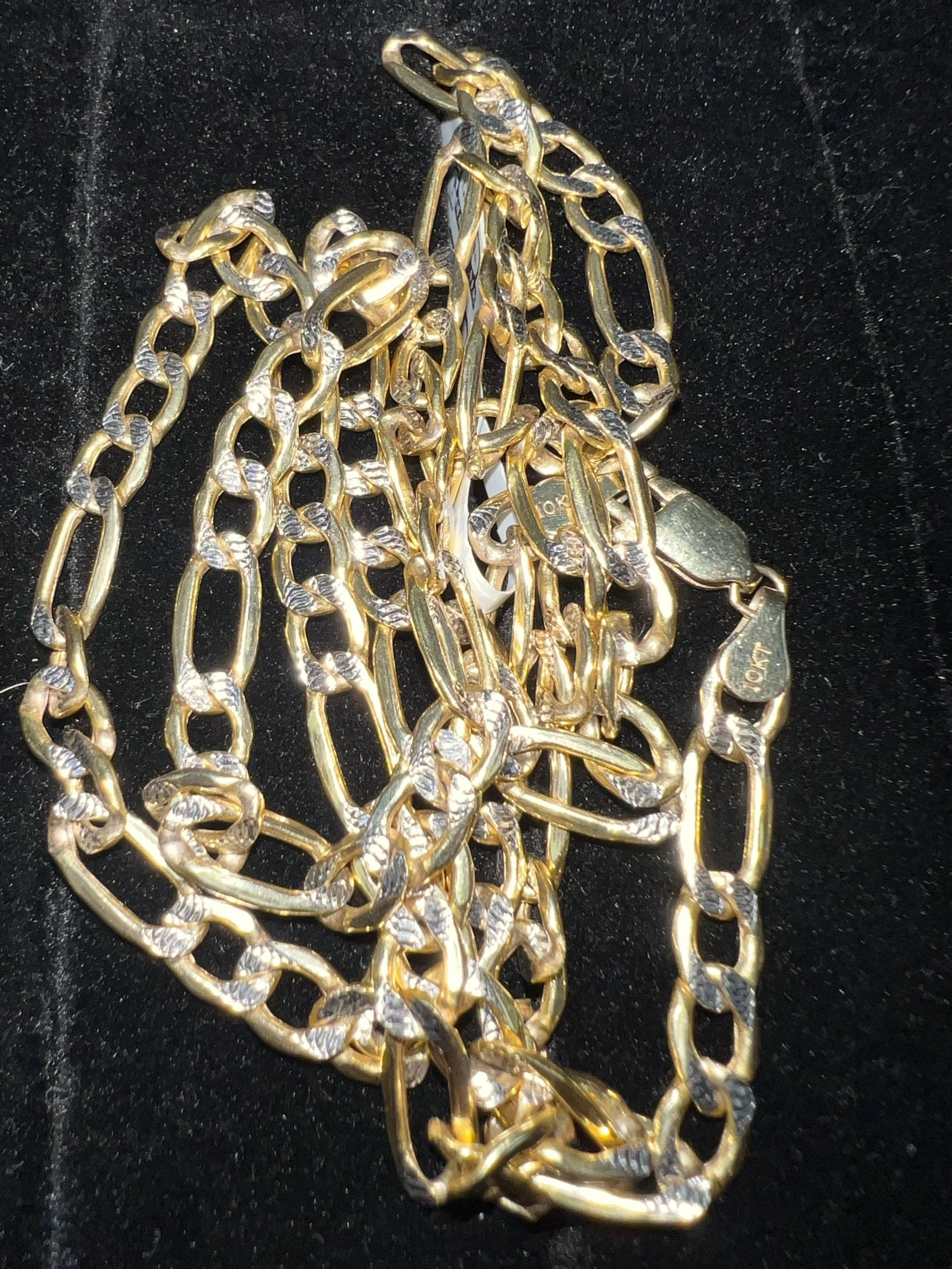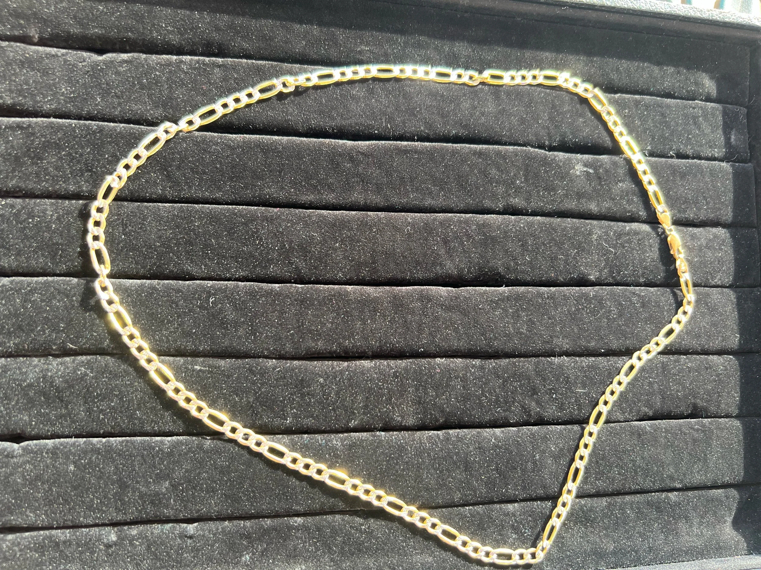 Image 1 of 5 Image 2 of 5 Image 3 of 5 Image 4 of 5 Image 5 of 5 10k 11.6g Figaro Chain 5.5mm 26” $790.00 Brilliant Figaro Chain two-tone and light weight. Add To Cart Added! Brilliant Figaro Chain two-tone and light weight. Reviews Reviewer Name Review Date Star Rating Description Posted on Etsy Product Show More