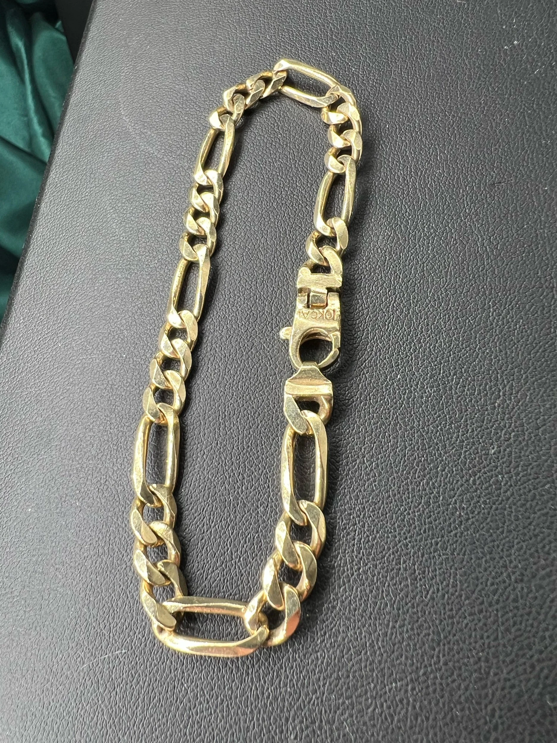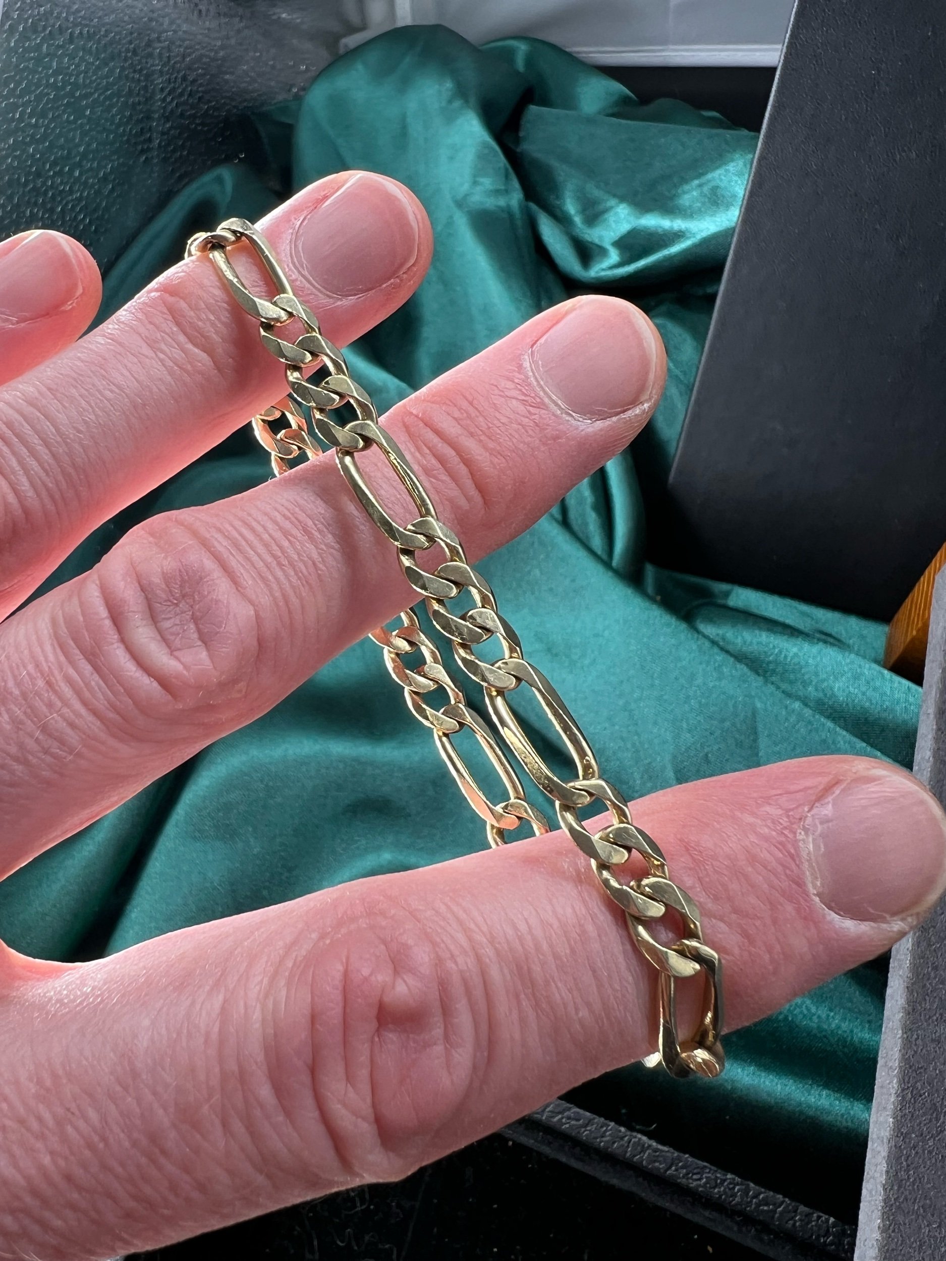 Image 1 of 4 Image 2 of 4 Image 3 of 4 Image 4 of 4 10k 12.7g Figaro Bracelet 8” $915.00 Eye-catching gold Figaro bracelet crafted with a distinctive link pattern for everyday luxury. 6mm Add To Cart Added! Eye-catching gold Figaro bracelet crafted with a distinctive link pattern for everyday luxury. 6mm Reviews Reviewer Name Review Date Star Rating Description Posted on Etsy Product Show More