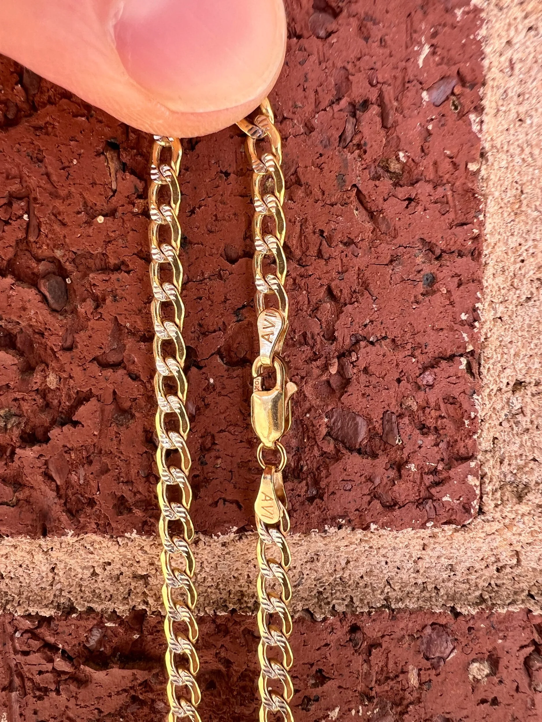Image 1 of 4 Image 2 of 4 Image 3 of 4 Image 4 of 4 10k 7g Two Tone Cuban 22” $510.00 Striking two-tone 10k Cuban chain blending contrast and shine. 4mm Add To Cart Added! Striking two-tone 10k Cuban chain blending contrast and shine. 4mm Reviews Reviewer Name Review Date Star Rating Description Posted on Etsy Product Show More
