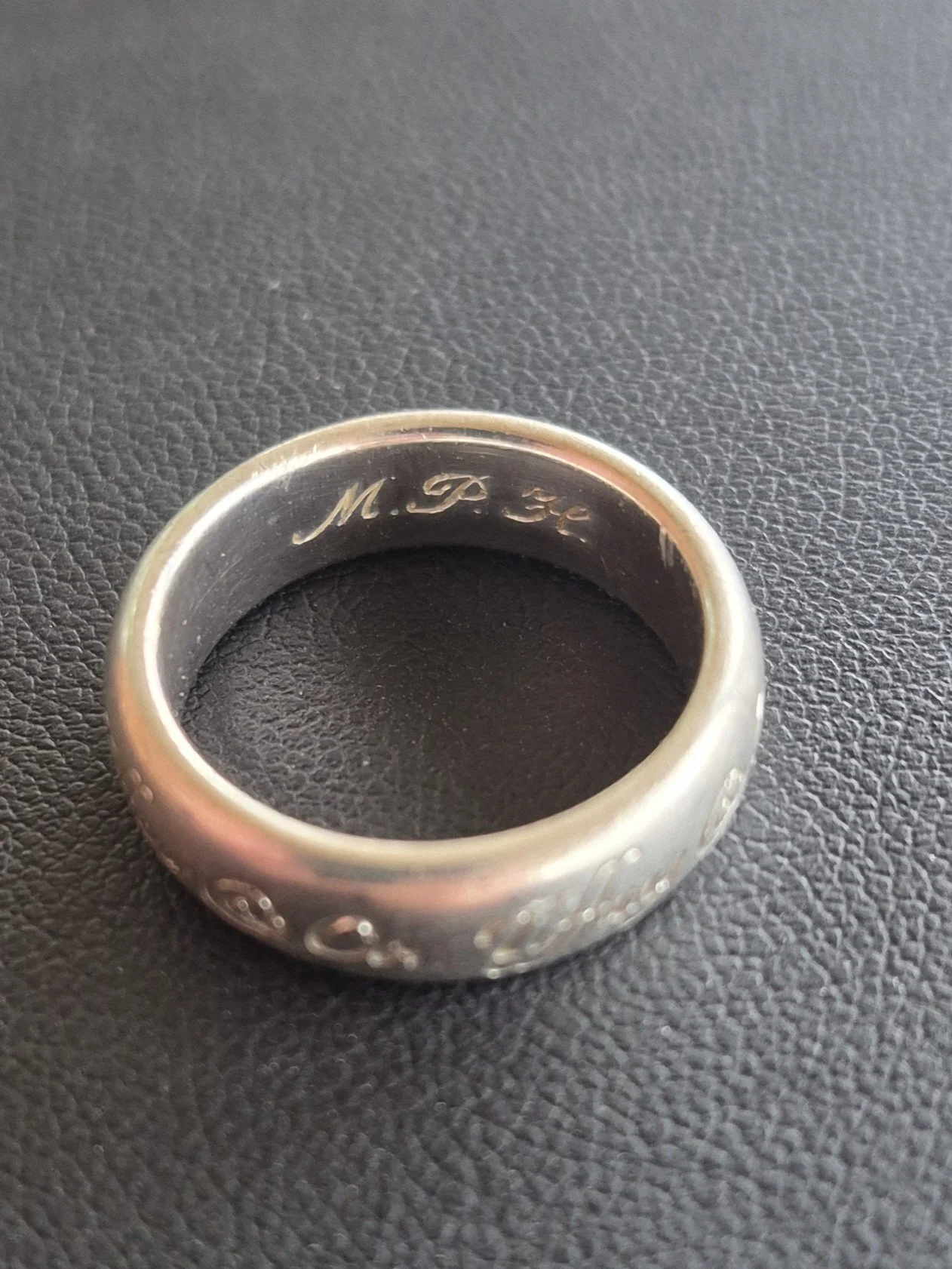 Image 1 of 6 Image 2 of 6 Image 3 of 6 Image 4 of 6 Image 5 of 6 Image 6 of 6 Silver 6.7g Tiffany & Co. script band- sz6 $50.00 Sold Out Designer silver ring with “Tiffany & Co” in script writing all around band Sold Out Added! Designer silver ring with “Tiffany & Co” in script writing all around band Reviews Reviewer Name Review Date Star Rating Description Posted on Etsy Product Show More