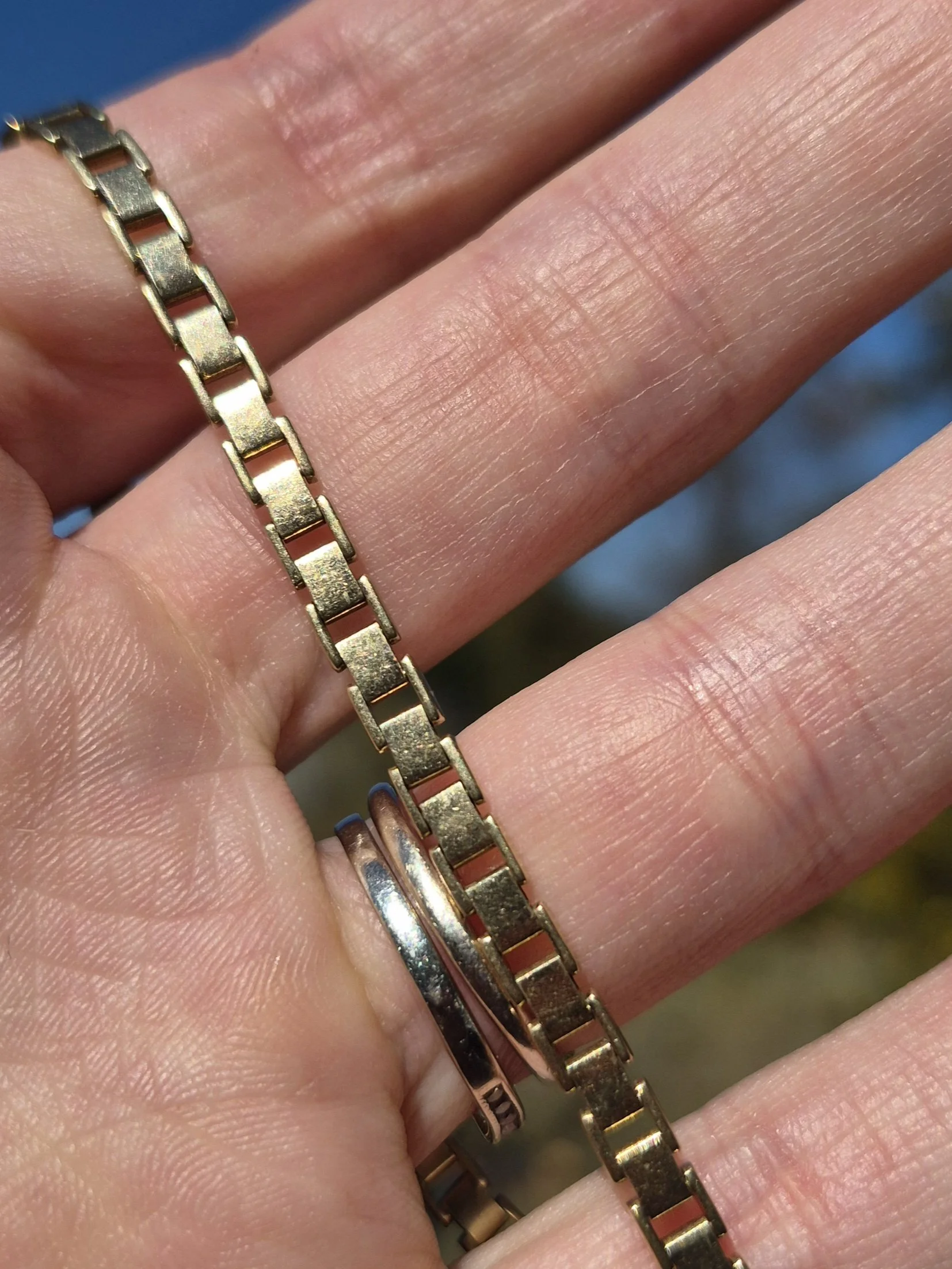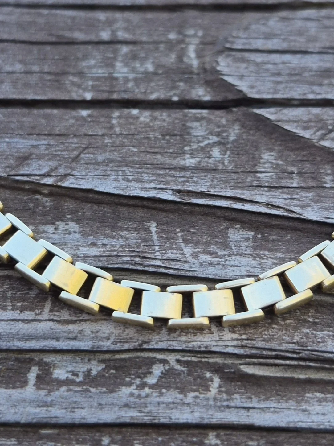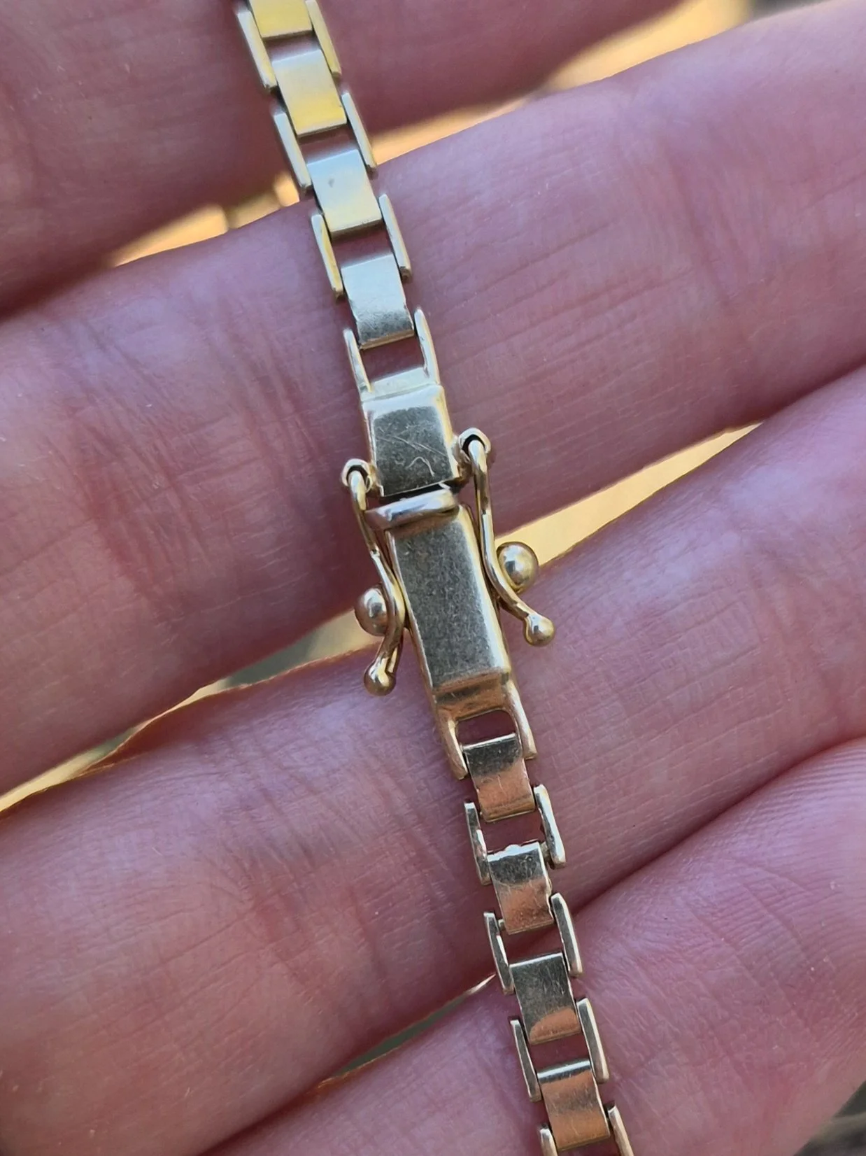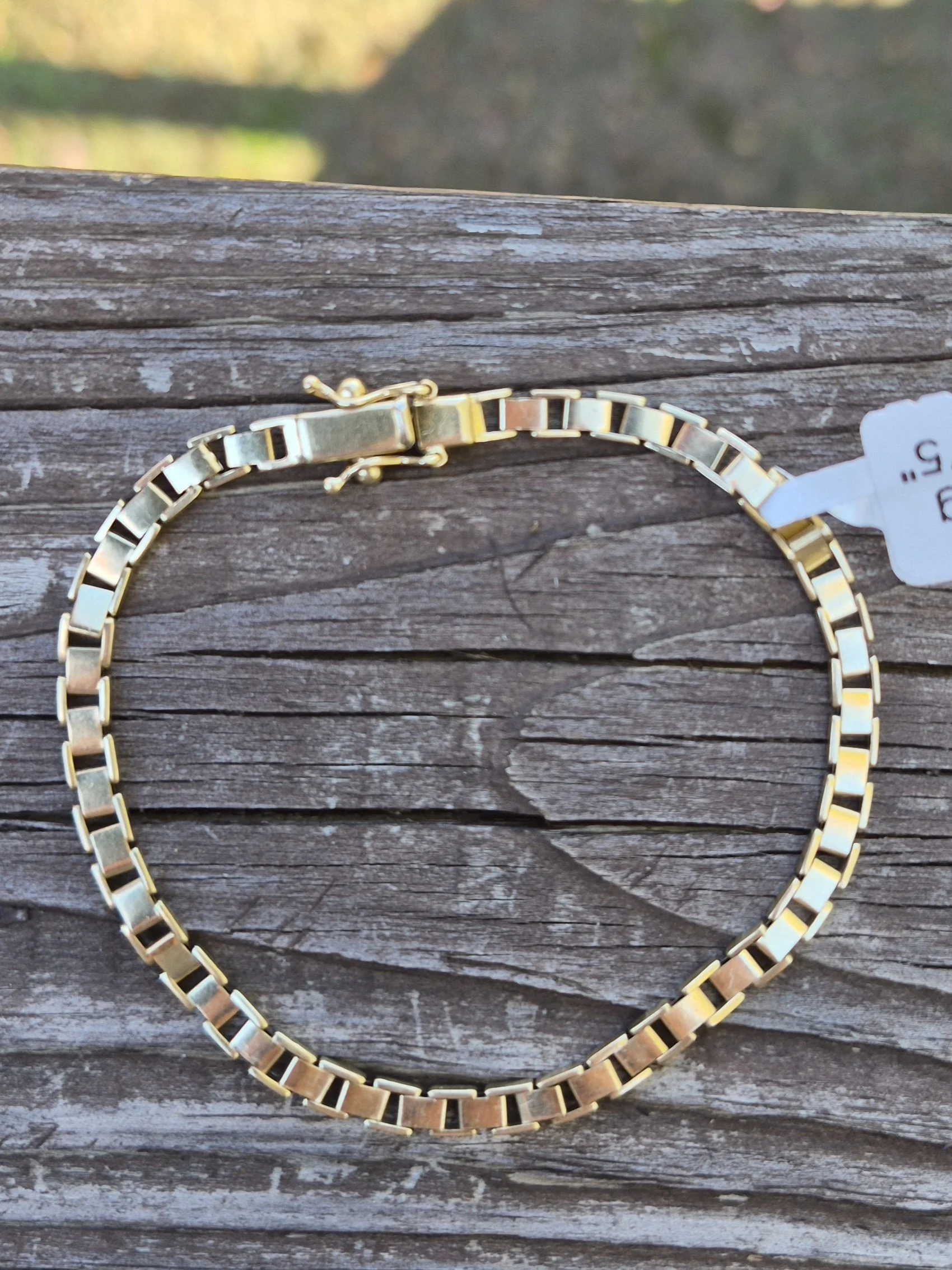 Image 1 of 5 Image 2 of 5 Image 3 of 5 Image 4 of 5 Image 5 of 5 14k 9.0g ladder style bracelet- 7.75" $846.00 4mm wide 7.75 inches long Add To Cart Added! 4mm wide 7.75 inches long Reviews Reviewer Name Review Date Star Rating Description Posted on Etsy Product Show More