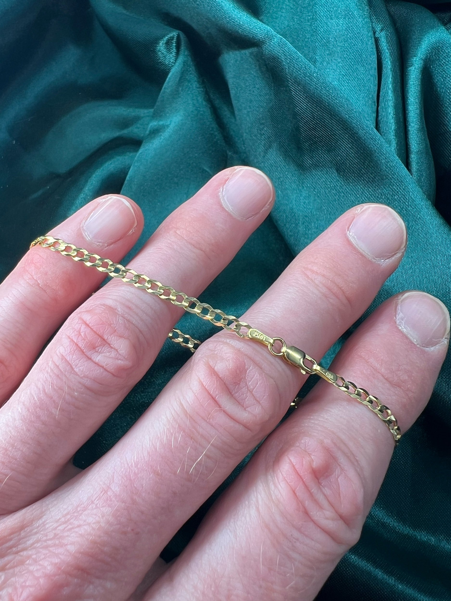 Image 1 of 4 Image 2 of 4 Image 3 of 4 Image 4 of 4 10k 2.1g Thin Cuban 7.5mm $155.00 Sleek 10k thin Cuban chain with subtle shine. 3.1mm Quantity: Add To Cart Added! Sleek 10k thin Cuban chain with subtle shine. 3.1mm Reviews Reviewer Name Review Date Star Rating Description Posted on Etsy Product Show More