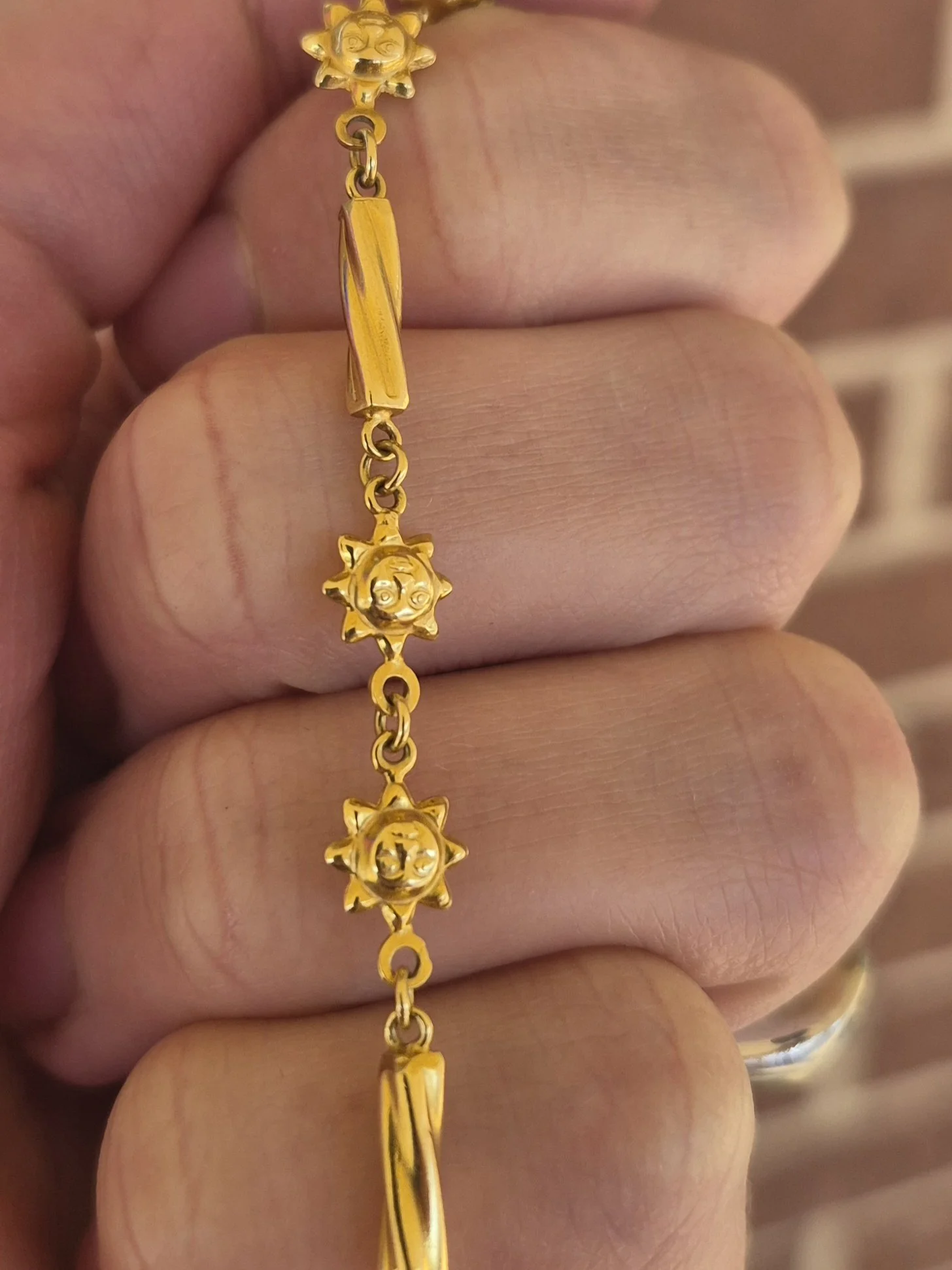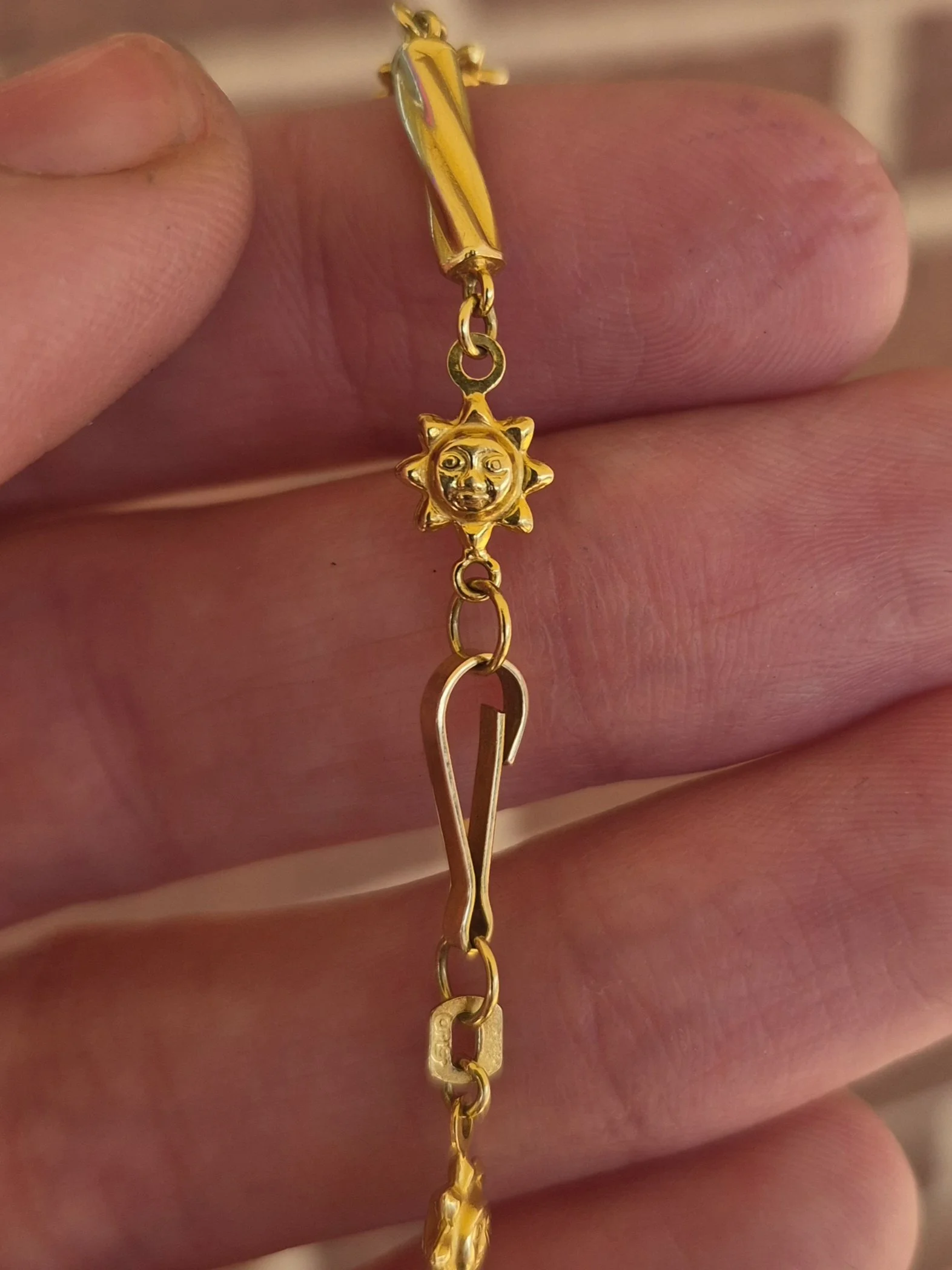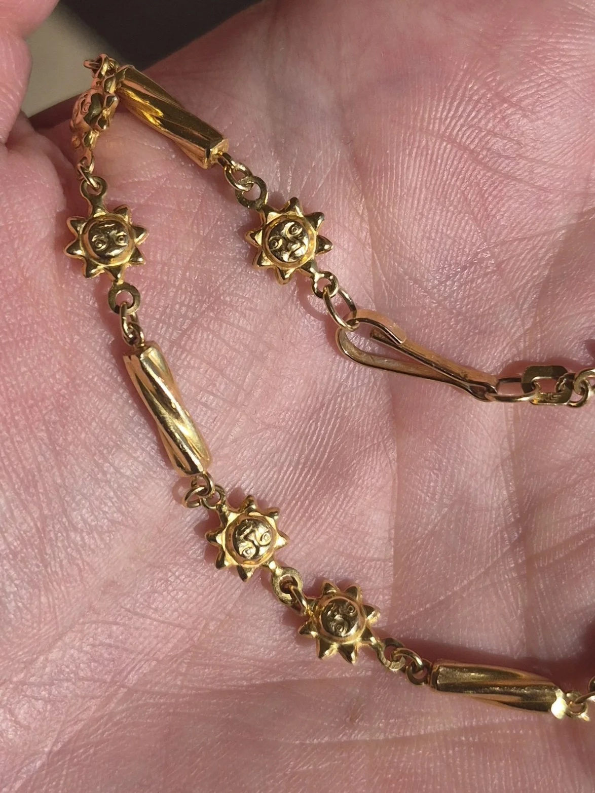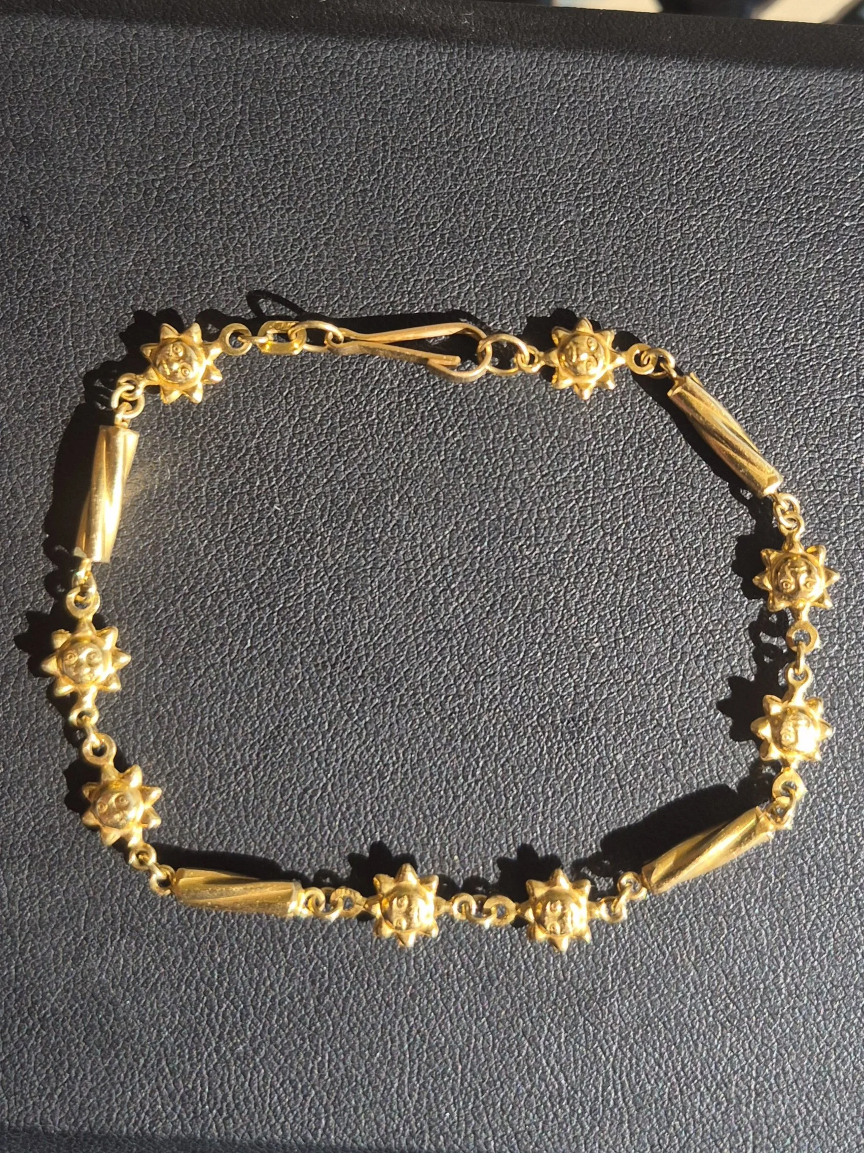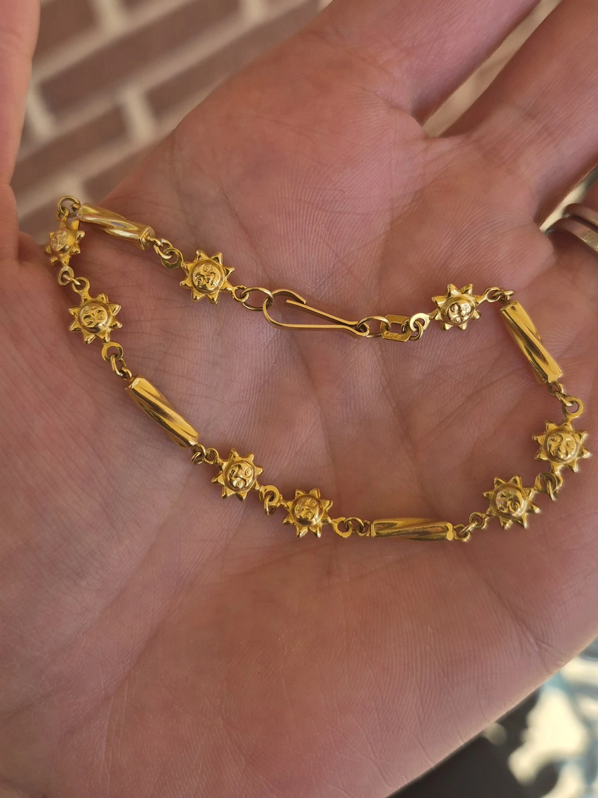 Image 1 of 5 Image 2 of 5 Image 3 of 5 Image 4 of 5 Image 5 of 5 18k 4.4g sun bracelet- 7.25" $532.00 Sold Out 7.25 inches long Sold Out Added! 7.25 inches long Reviews Reviewer Name Review Date Star Rating Description Posted on Etsy Product Show More