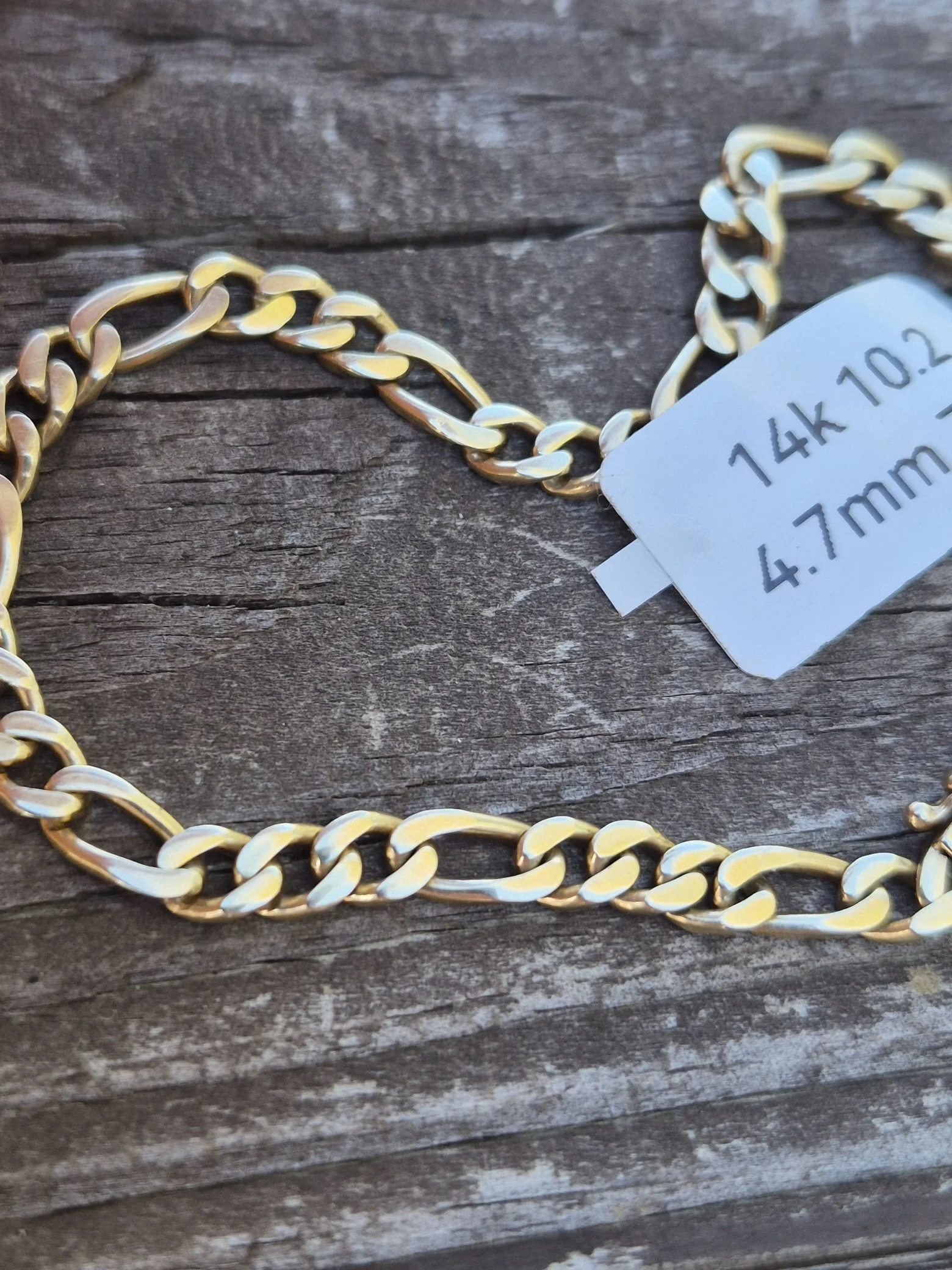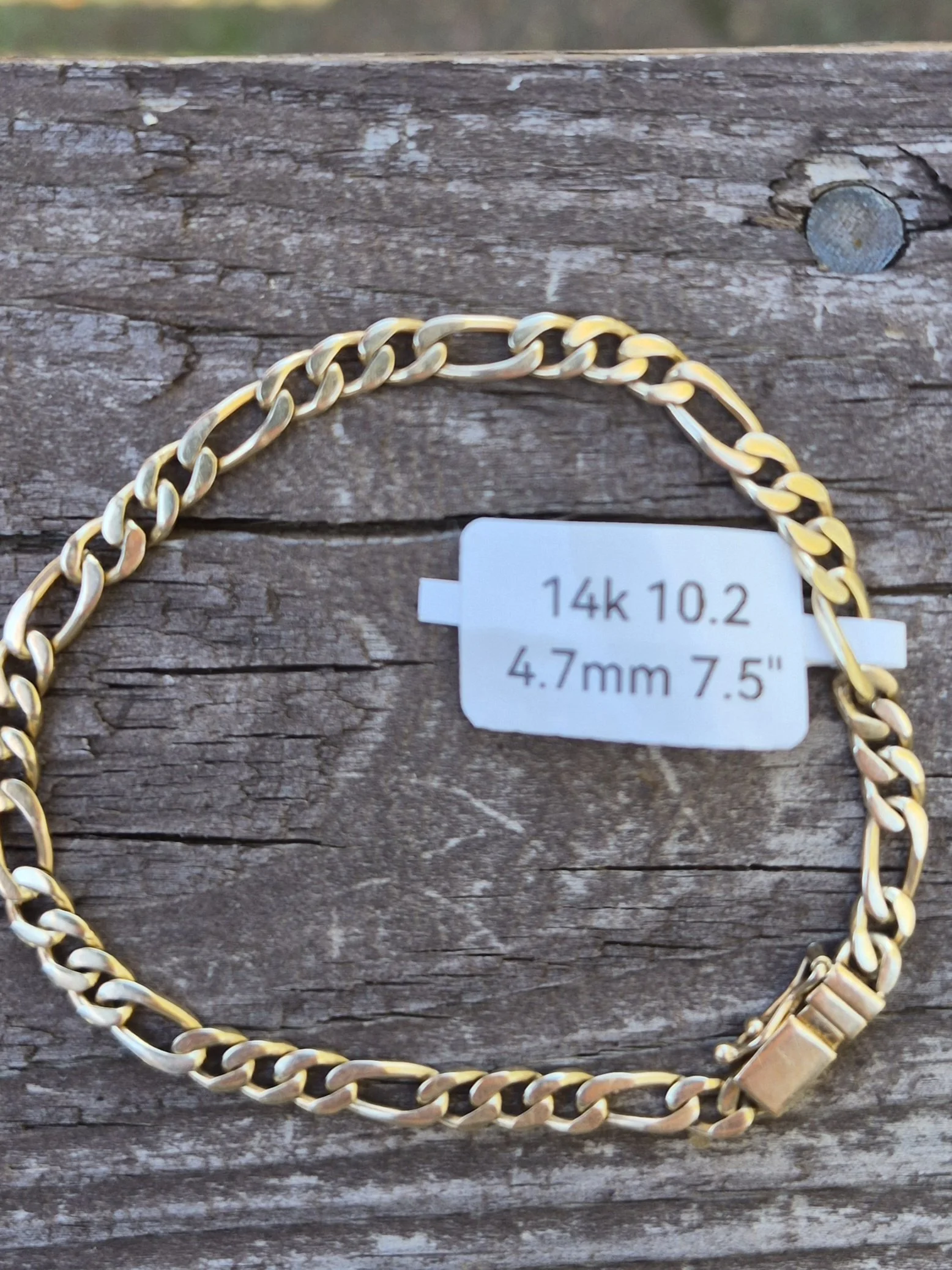 Image 1 of 5 Image 2 of 5 Image 3 of 5 Image 4 of 5 Image 5 of 5 14k 10.2 figuro bracleet- 7.75" $959.00 4.7mm wide and 7.5 inches long Add To Cart Added! 4.7mm wide and 7.5 inches long Reviews Reviewer Name Review Date Star Rating Description Posted on Etsy Product Show More