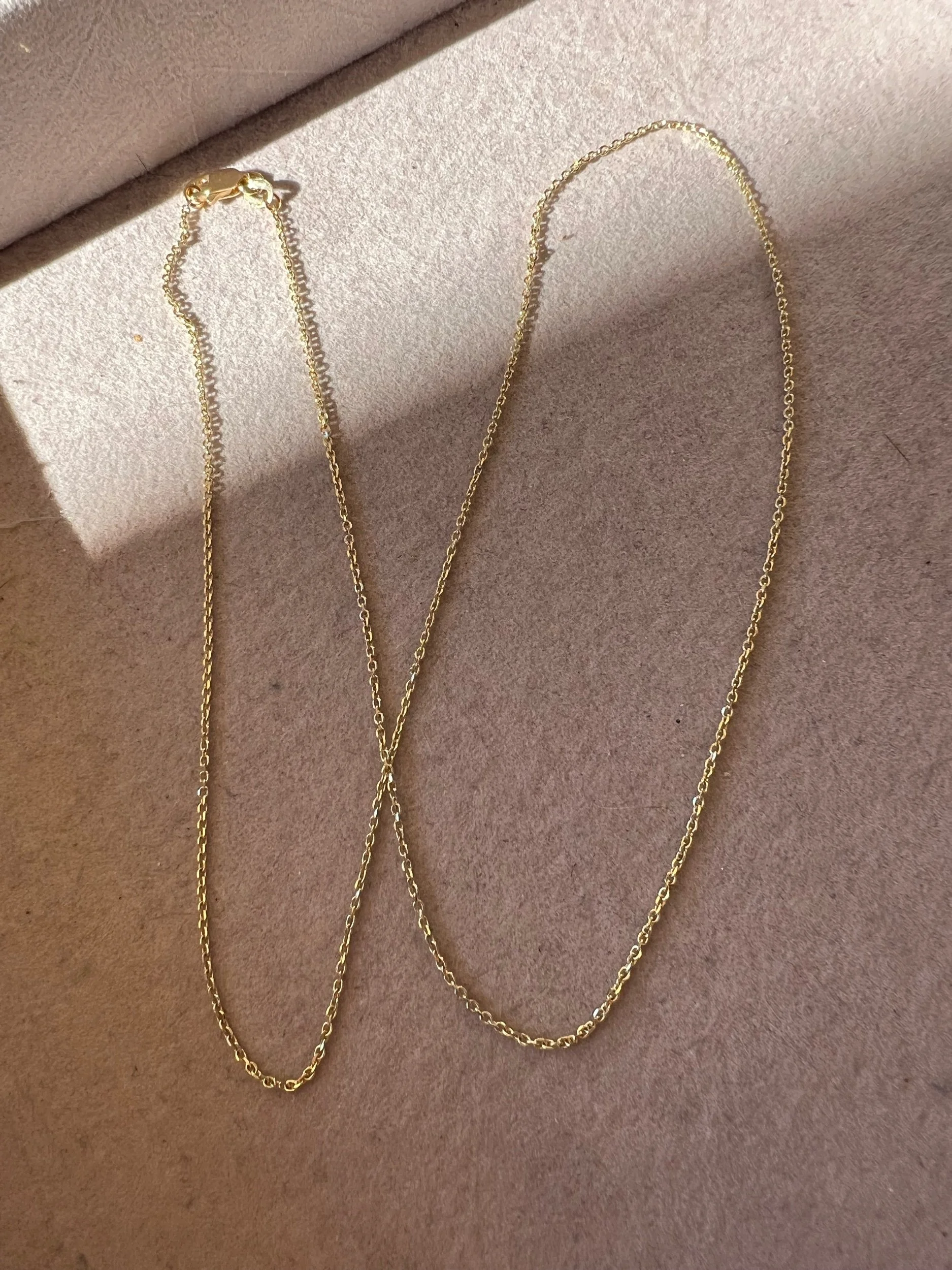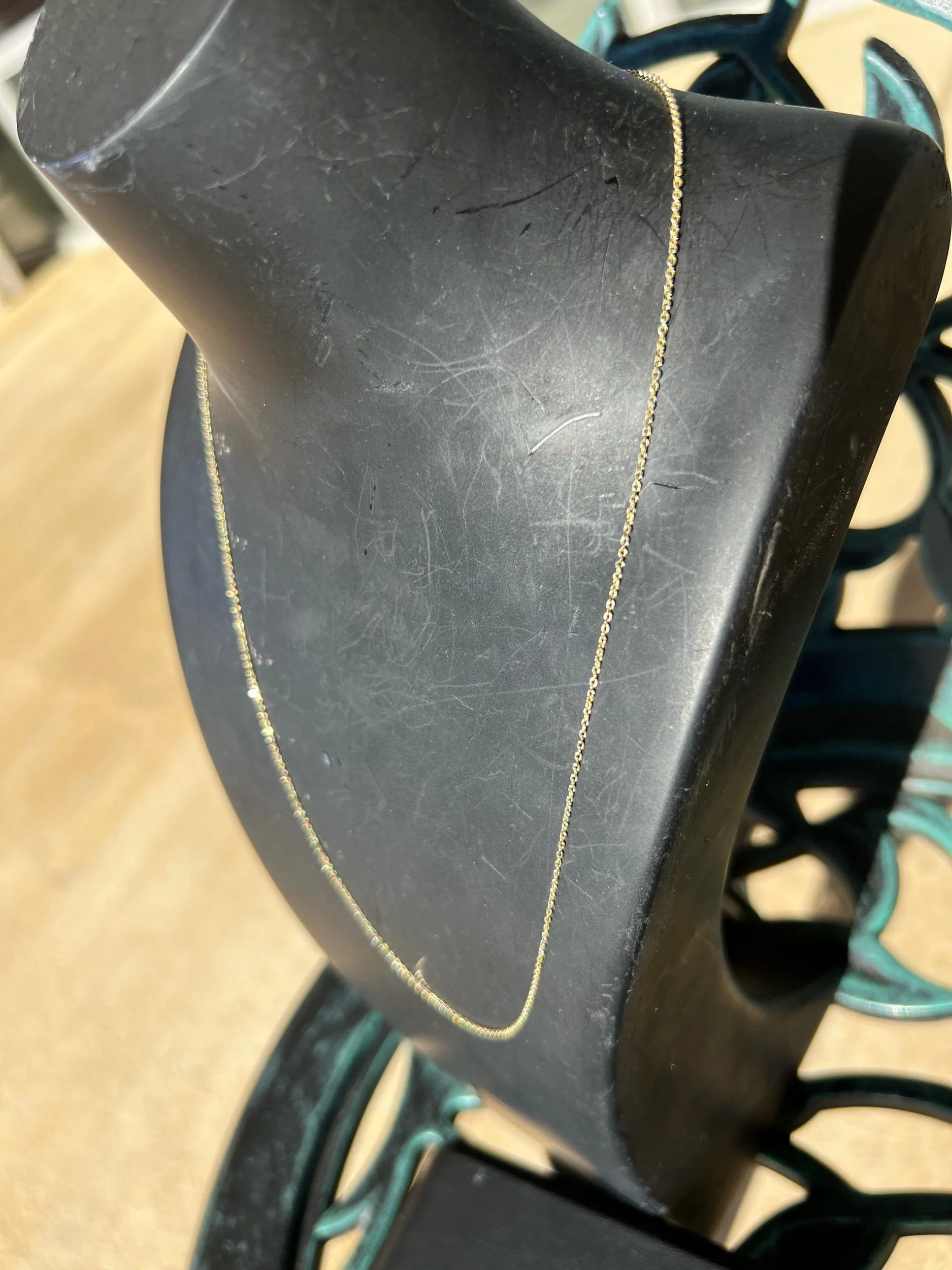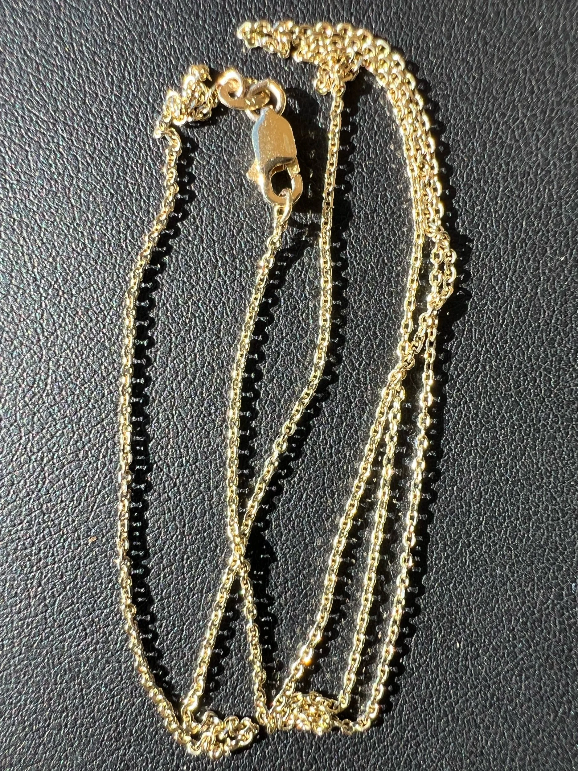 Image 1 of 5 Image 2 of 5 Image 3 of 5 Image 4 of 5 Image 5 of 5 14k 1.9g Link Chain 18” $190.00 Elegant 14k delicate round open-link chain offering timeless shine. 0.8mm Add To Cart Added! Elegant 14k delicate round open-link chain offering timeless shine. 0.8mm Reviews Reviewer Name Review Date Star Rating Description Posted on Etsy Product Show More